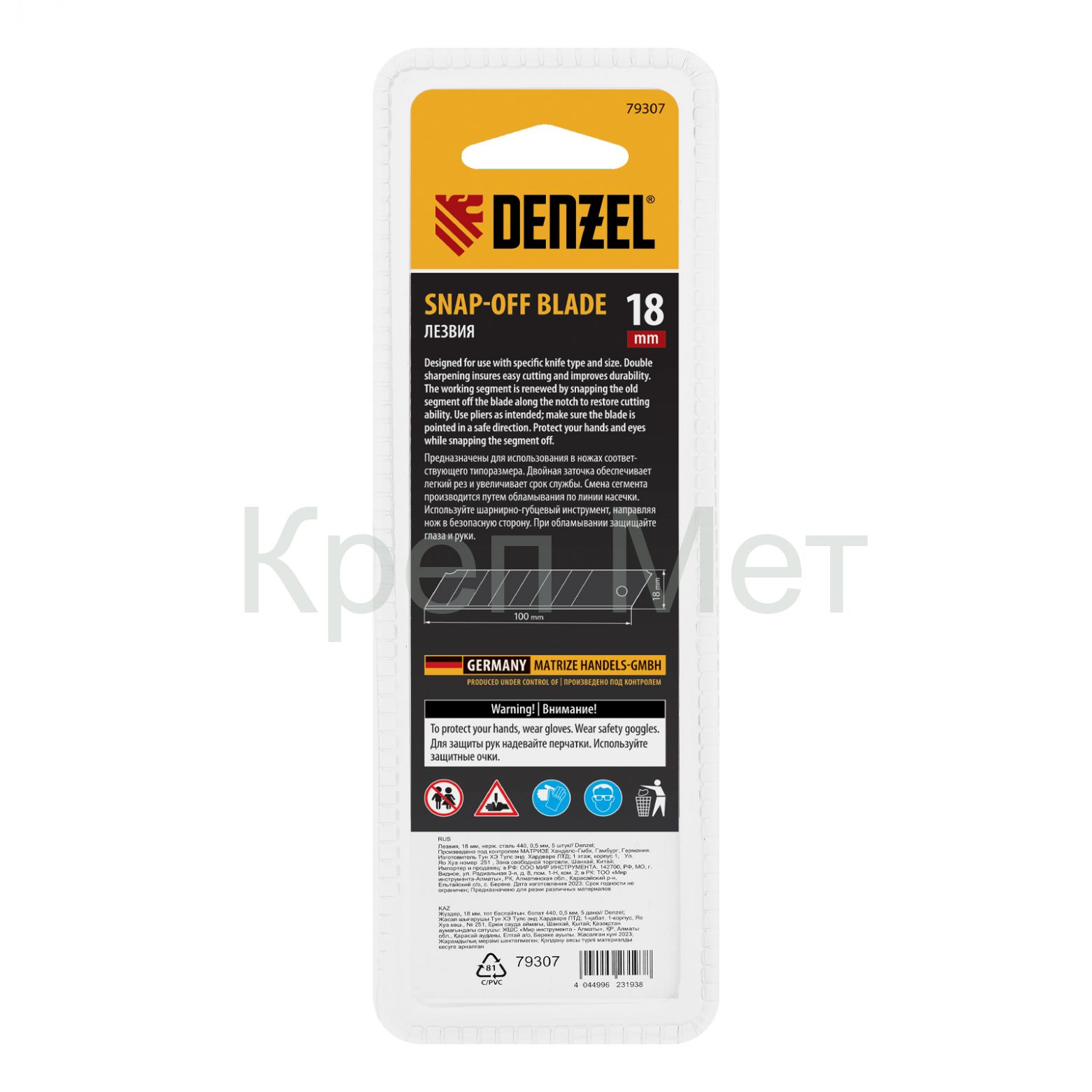 - Лезвия, 18 мм, нерж. сталь 440, 0,5 мм, 5 штук Denzel