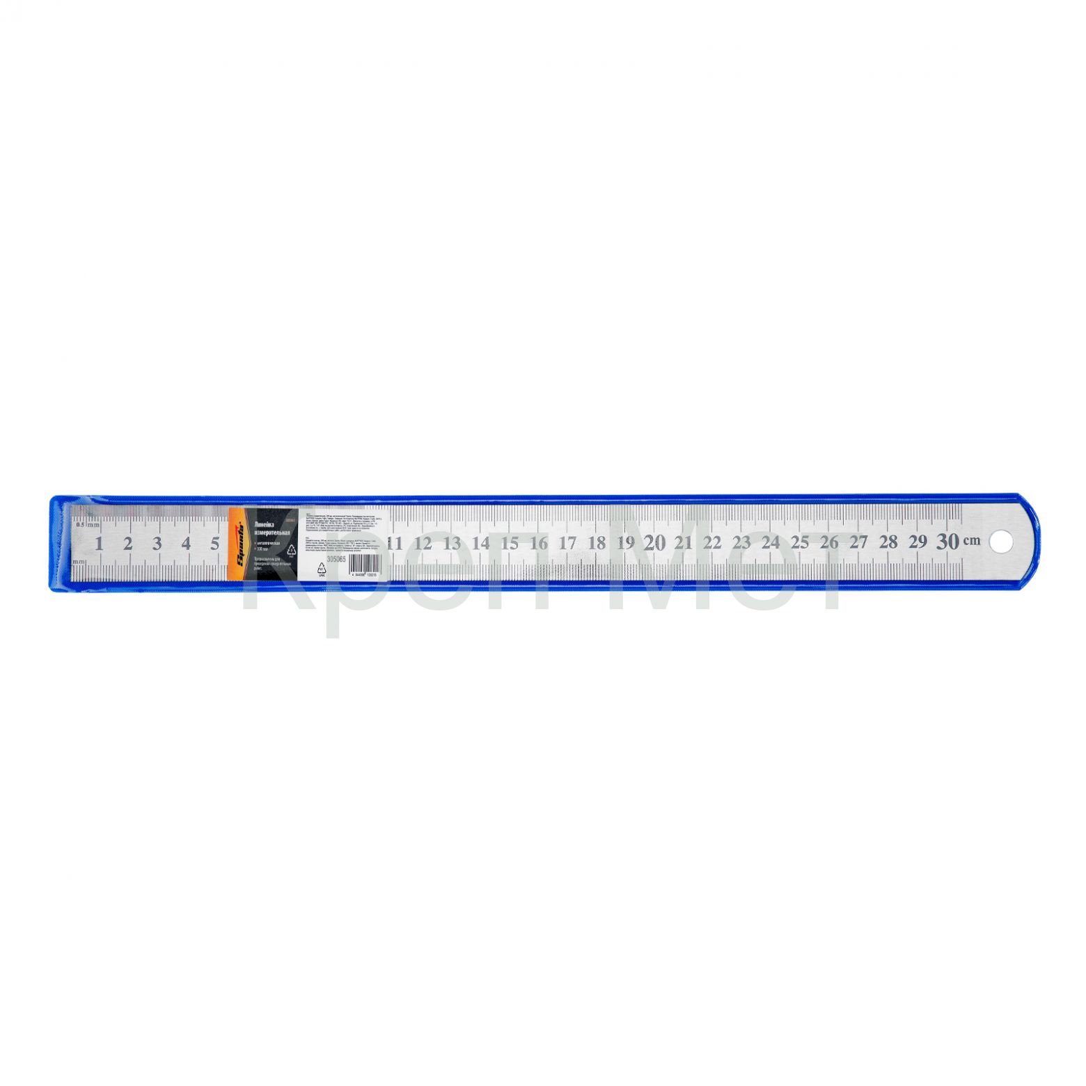 Металлическая измерительная линейка Sparta 305065 с пределом измерения 300 мм предназначена для определения размеров деталей, разметки поверхностей и начертания прямых линий. Используется преимущественно во время строительства и ремонта, проектирования, занятий творчеством, в металлообработке, будет полезна дома и в гараже.