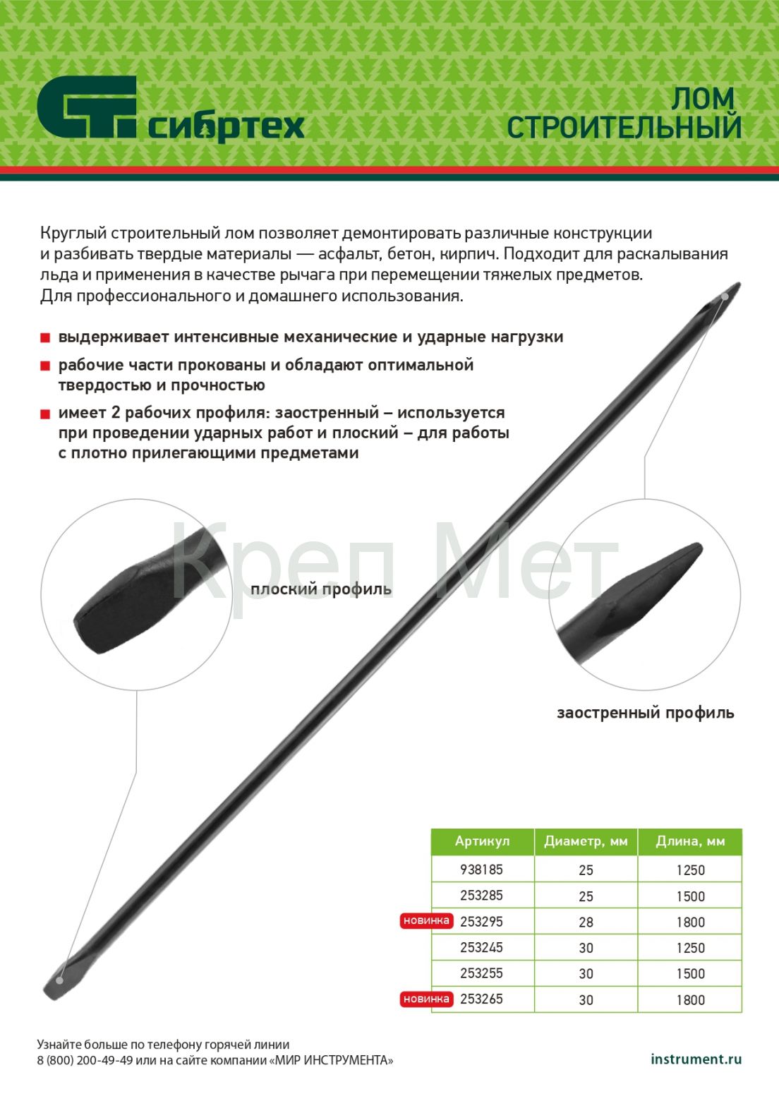 - Лом строительный, D 30 мм, L 1800 мм, круглый Сибртех