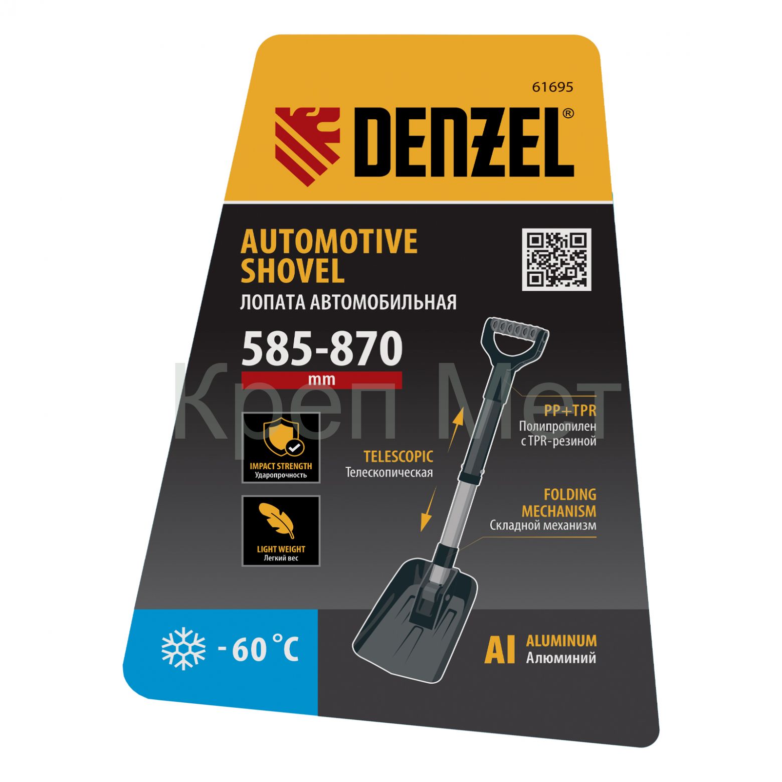 Лопата автомобильная складная, алюминиевая, 220х280х585-870 мм, телескопический черенок Denzel