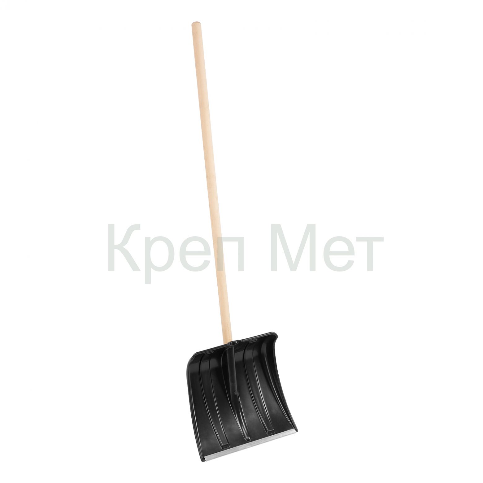 Лопата для уборки снега пластиковая, 380х350х1370 мм, деревянный черенок