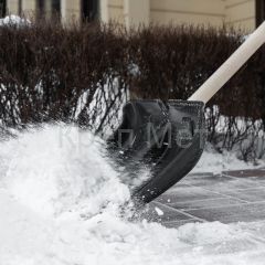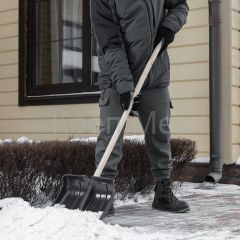 - Лопата для уборки снега пластиковая, 380х350х1370 мм, деревянный черенок