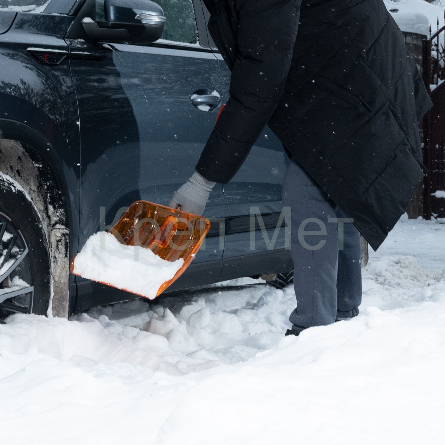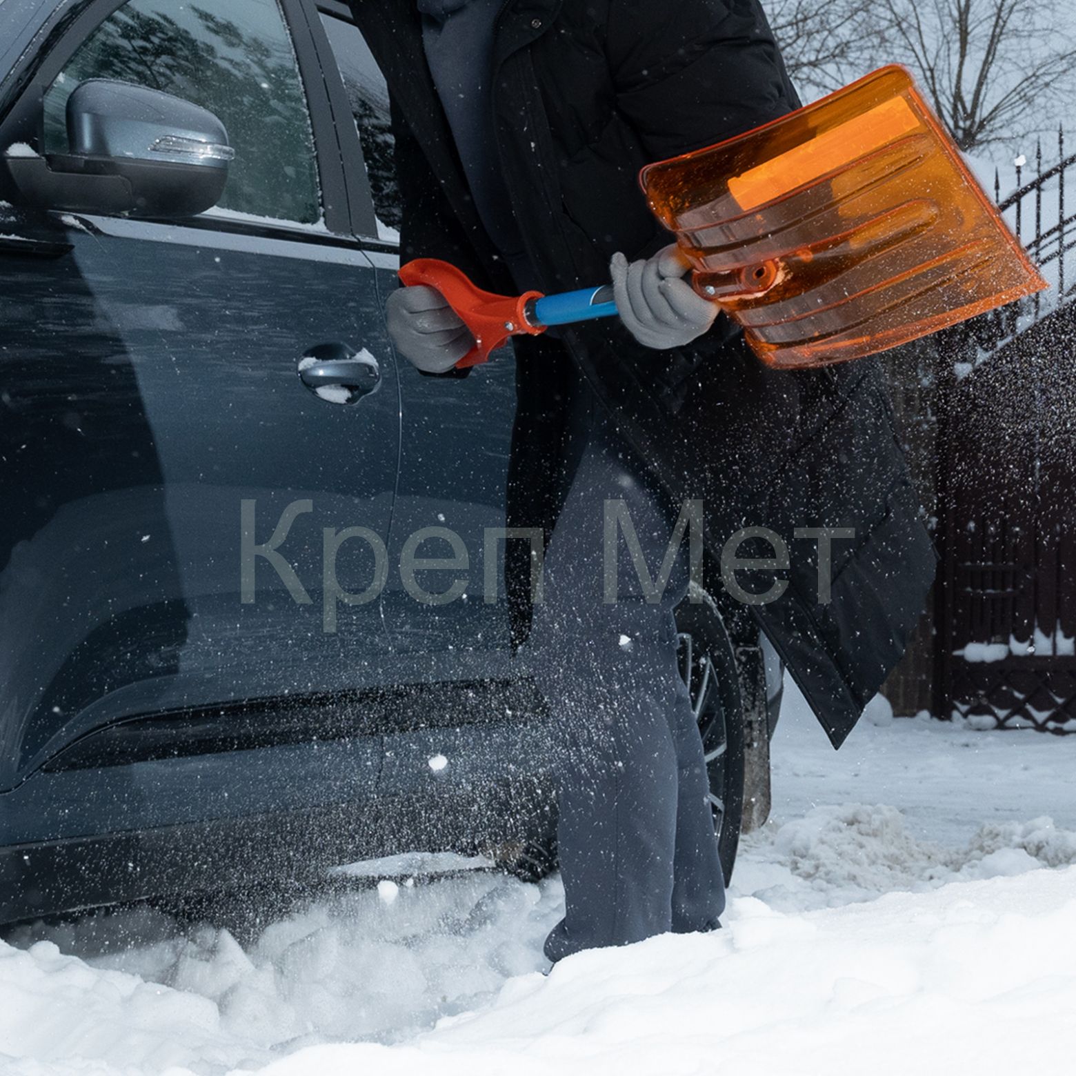 Усиленная автомобильная лопата для уборки снега Сибртех 61673 длиной 840 мм, с ковшом из поликарбоната размером 270 х 360 мм, со стальным черенком, используется для расчистки территории после снегопада. Благодаря небольшим размерам ее удобно брать с собой. Лопата поможет освободить машину из снежного заноса, пригодится в дороге и хозяйстве