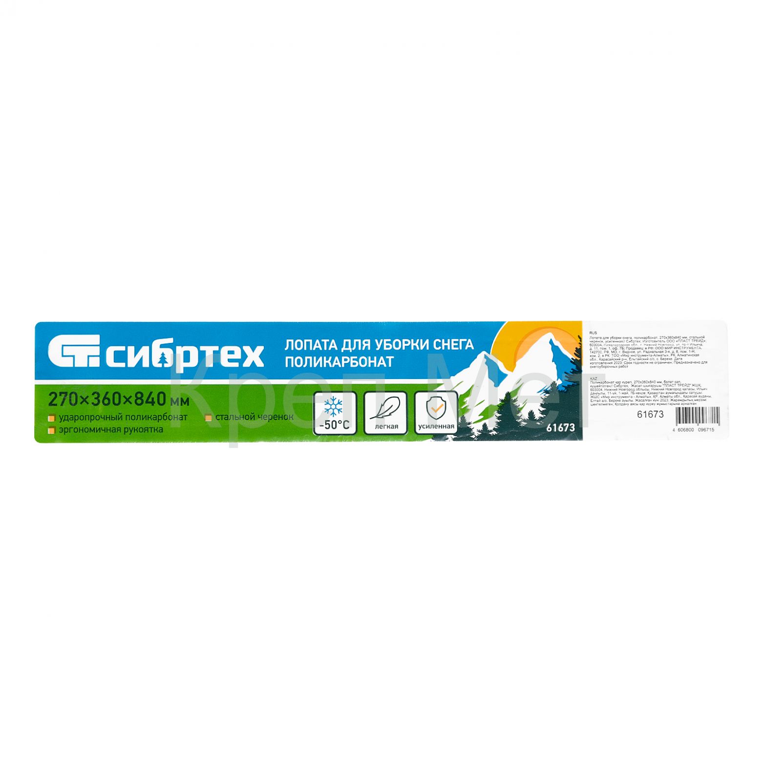 - Лопата для уборки снега, поликарбонат, 270х360х840 мм, стальной черенок, усиленная Сибртех