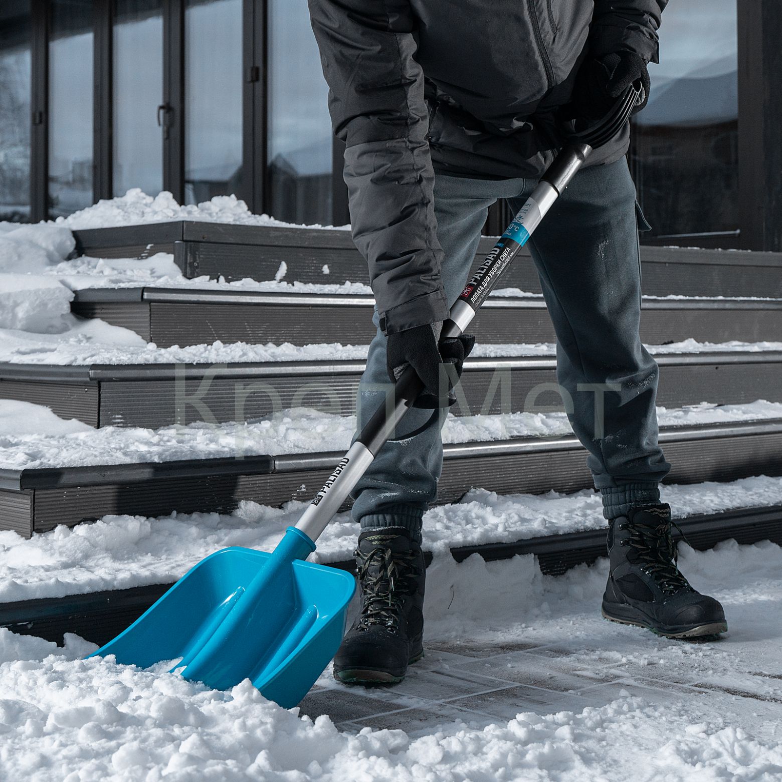 - Лопата для уборки снега, полипропилен, 350х405х1300мм, алюминиевый черенок, ПВХ накладка, LUXE Palisad