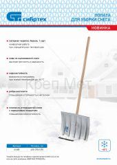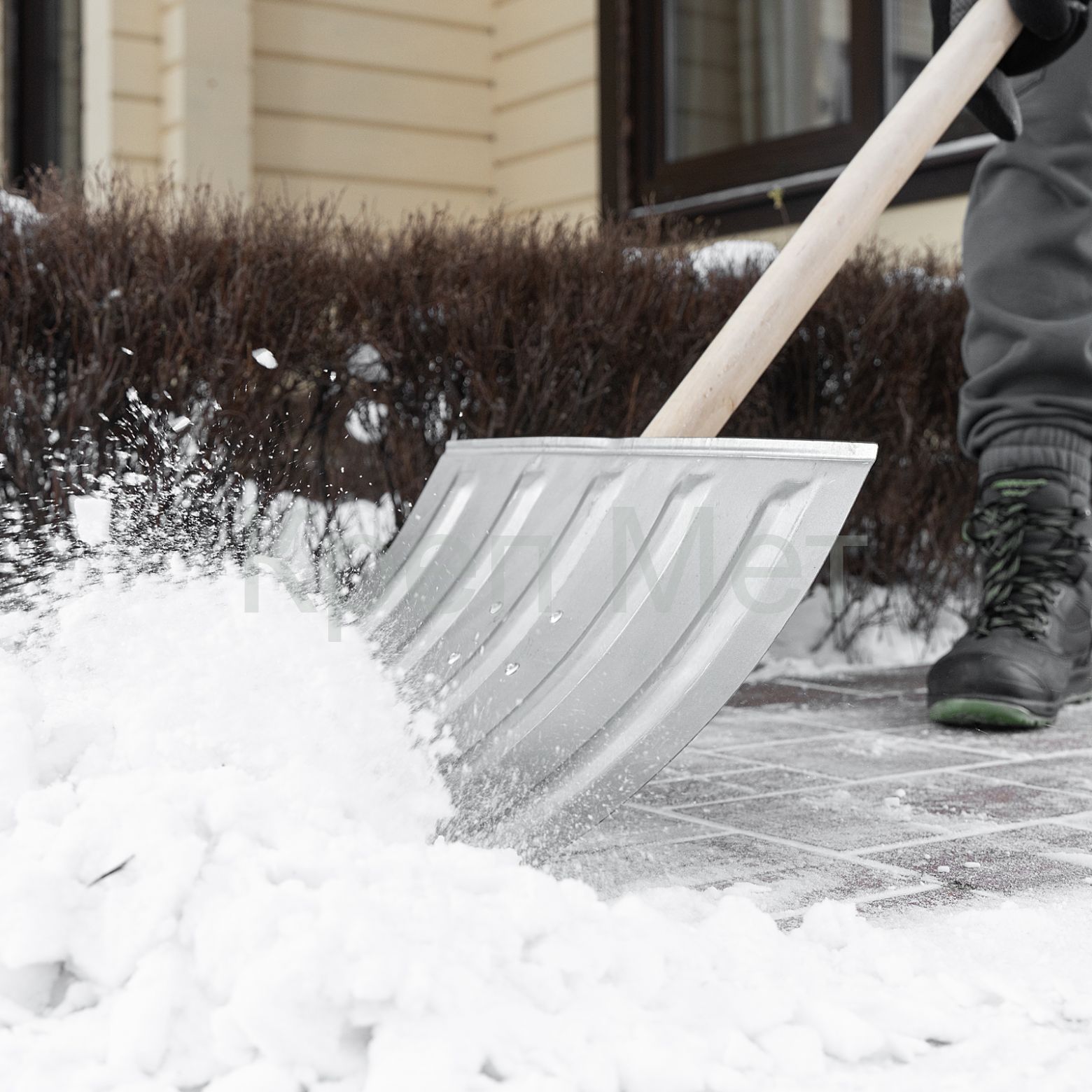 - Лопата для уборки снега стальная оцинкованная, 420х370х1370 мм, деревянный черенок, Сибртех