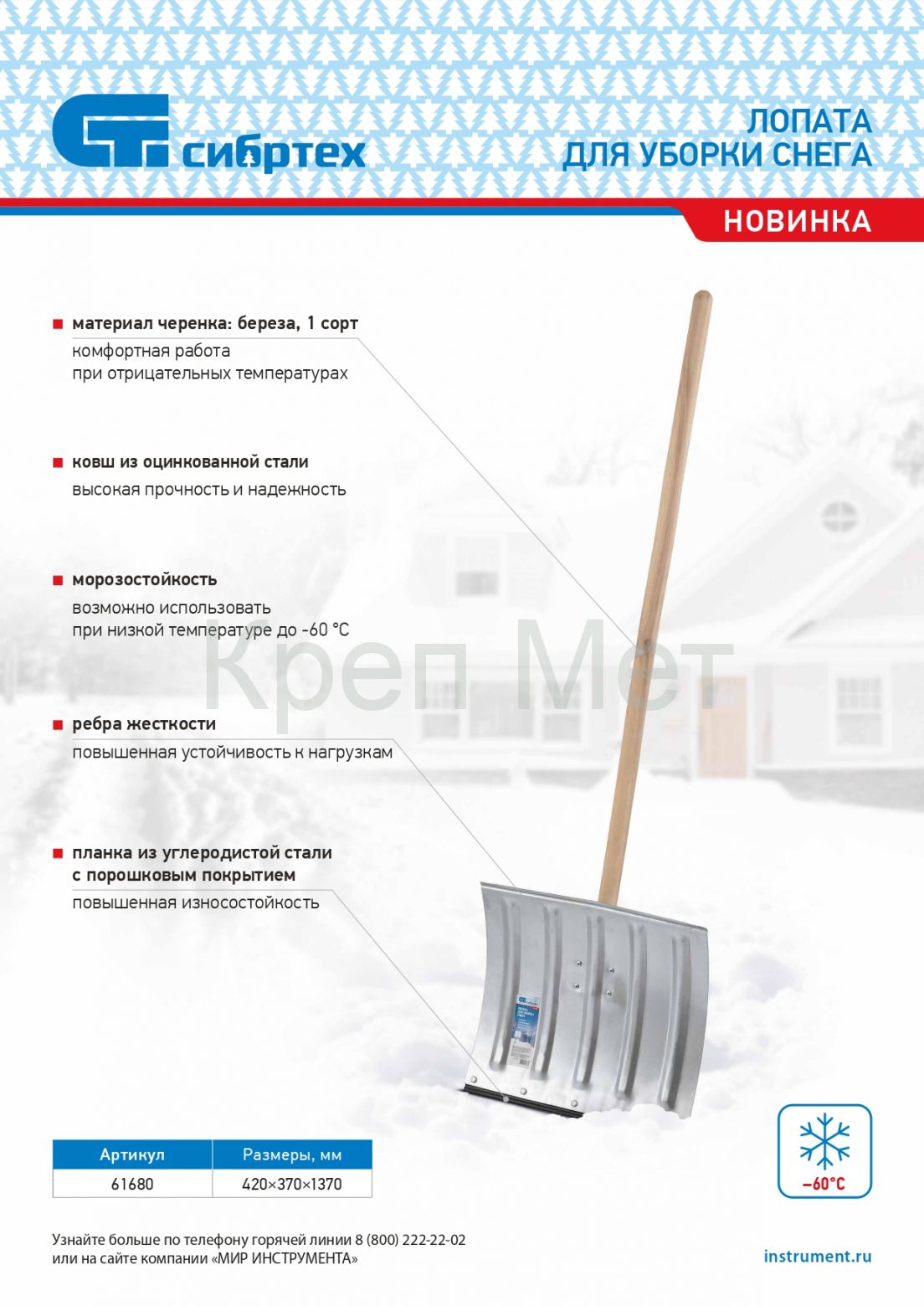 - Комфортная эксплуатация — деревянный черенок не доставляет дискомфорта рукам при выполнении работ на морозе, а легкий вес лопаты 1,43 кг позволяет работать без усталости.