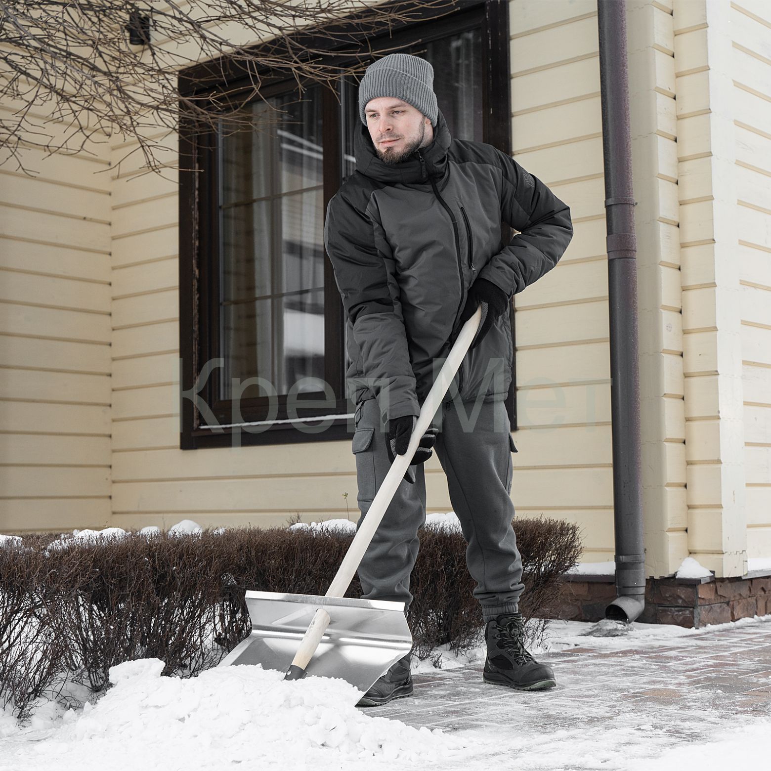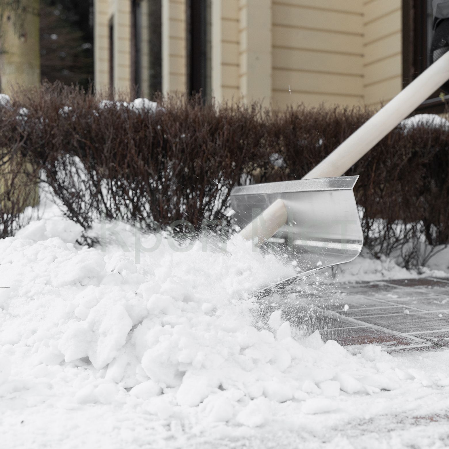 Лопата для уборки снега тротуарная, алюминиевая,500х400х1420мм, деревянный черенок, Сибртех