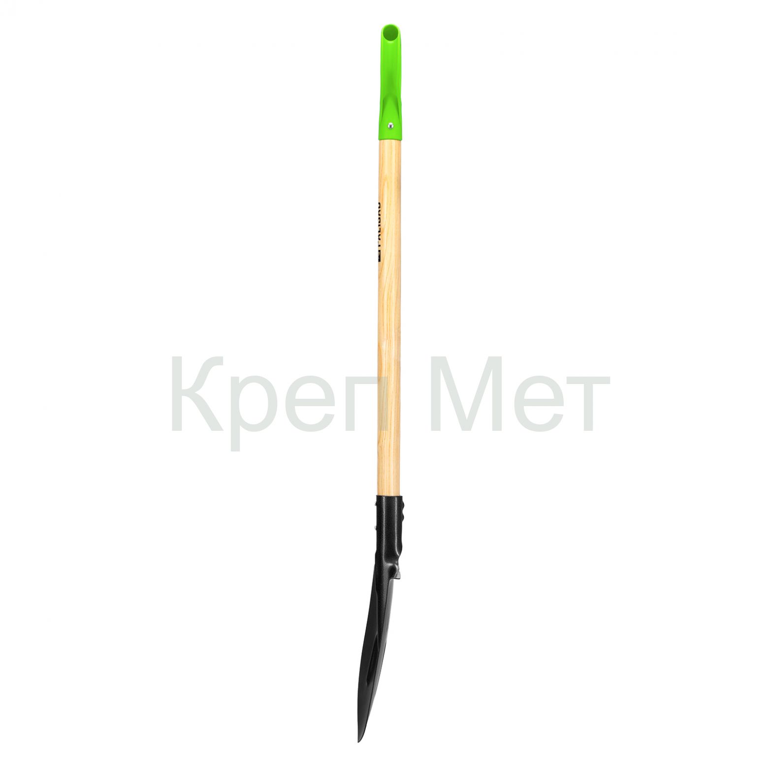 - Высокая прочность на излом — лопата оснащена цельновырубной тулейкой и полотном клиновидной формы с ребрами жесткости.