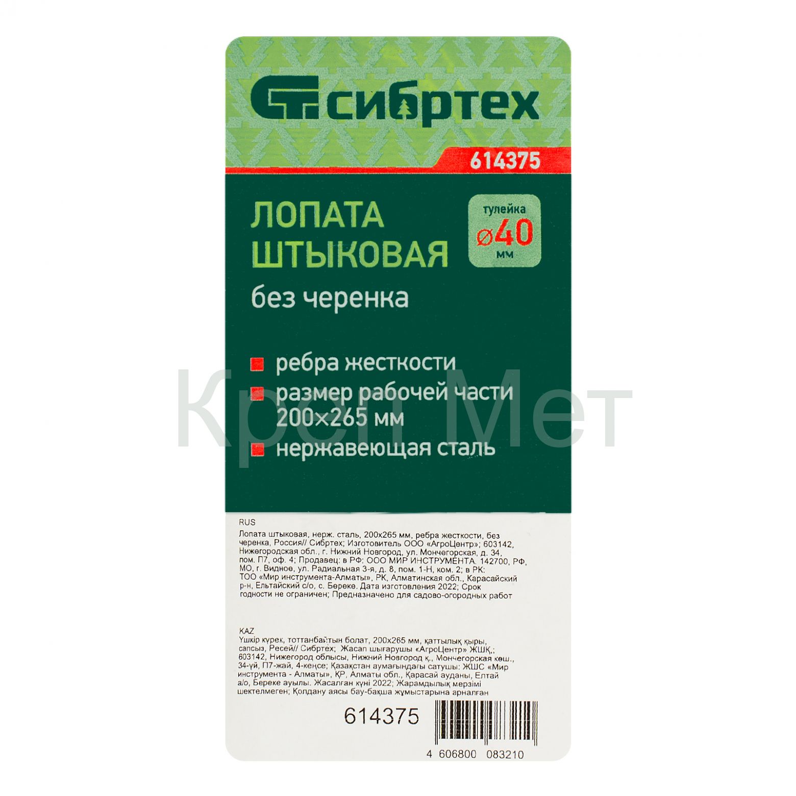 - Лопата штыковая, нержавеющая сталь, 200х265 мм, ребра жесткости, без черенка, Сибртех
