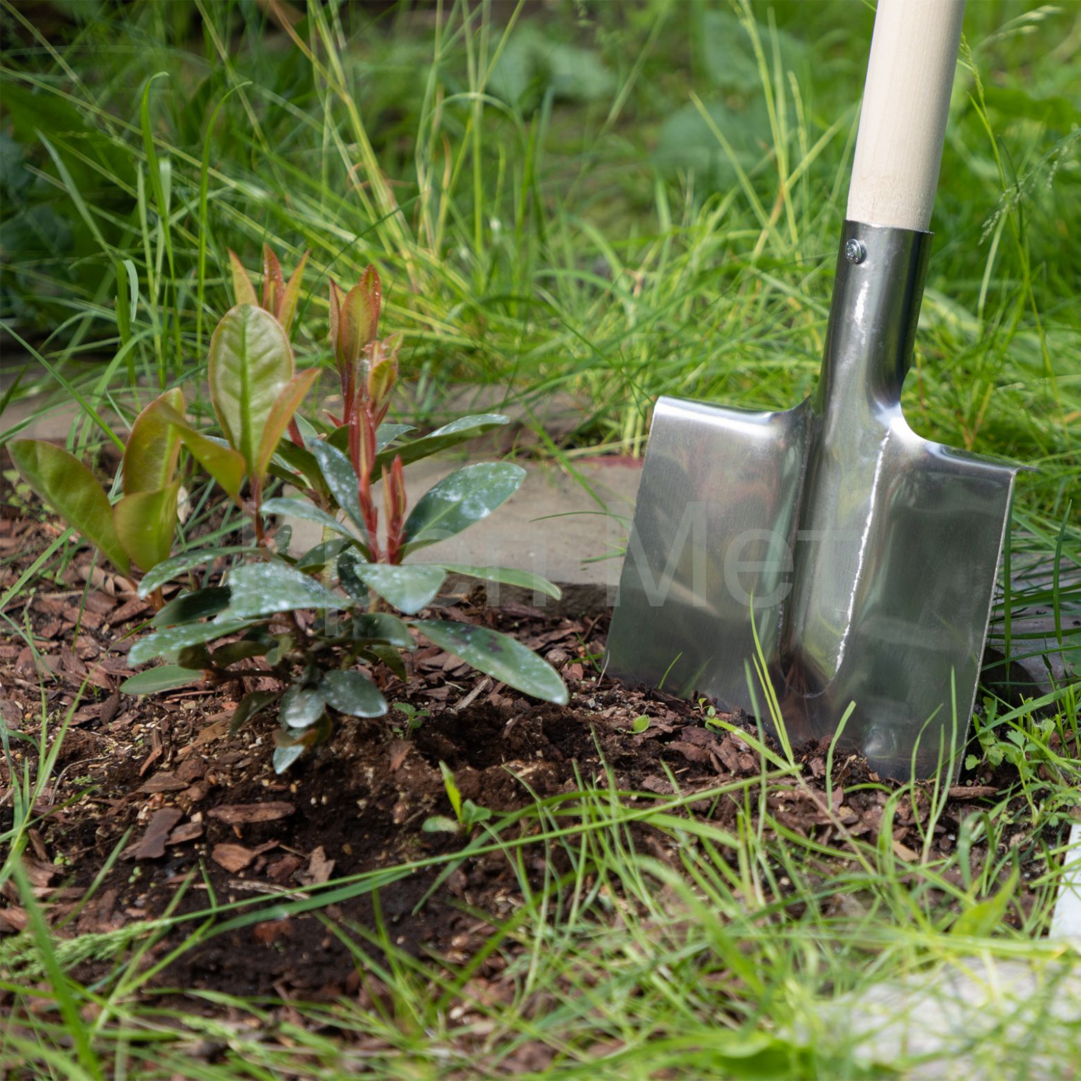 - Высокий показатель прочности — лопата изготовлена из нержавеющей стали.
