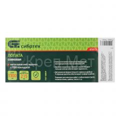 - Лопата совковая, 215х305х1300 мм, цельнометаллическая, Сибртех