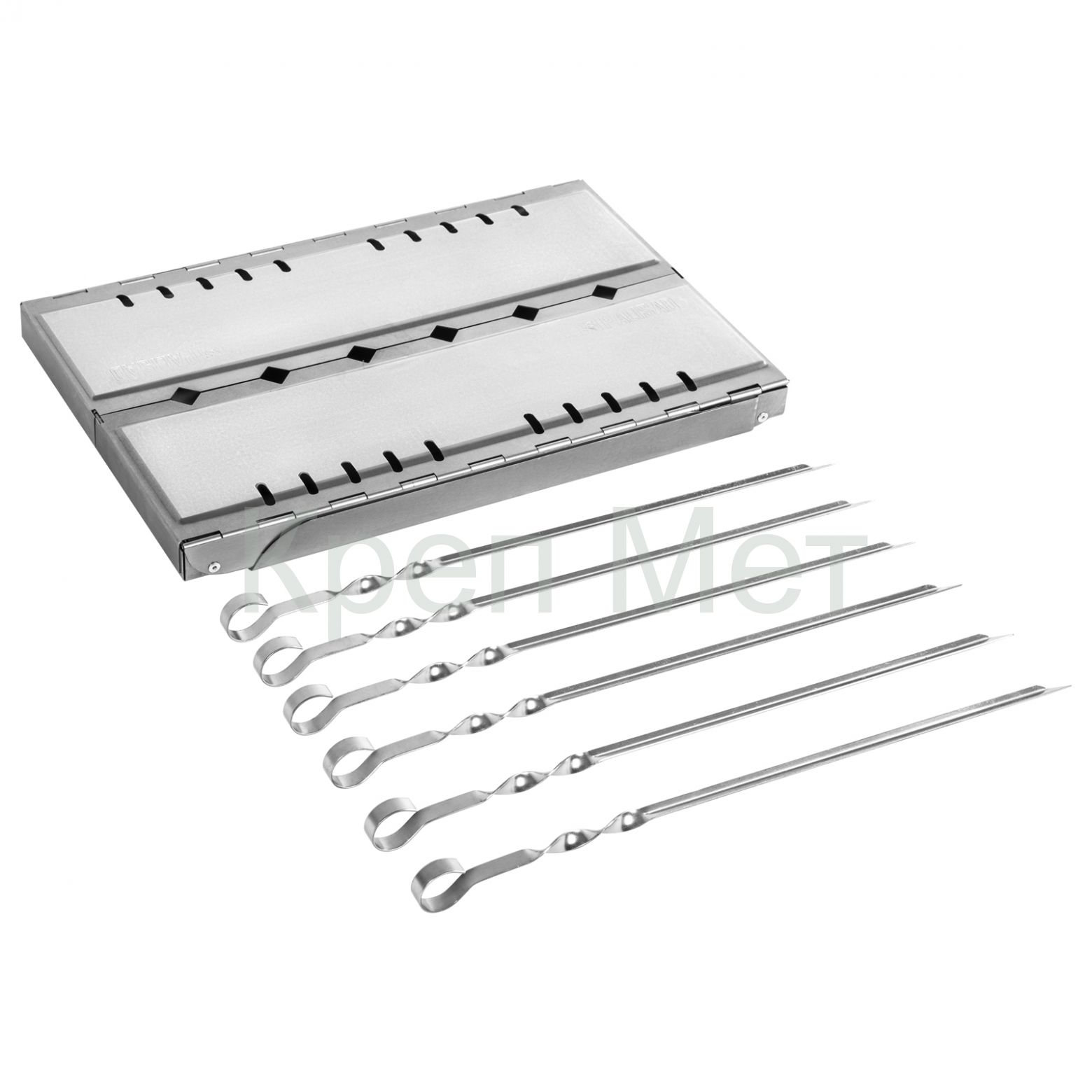- Продуманная комплектация — мангал поставляется с 6 шампурами из нержавеющей стали толщиной 1,5 мм.