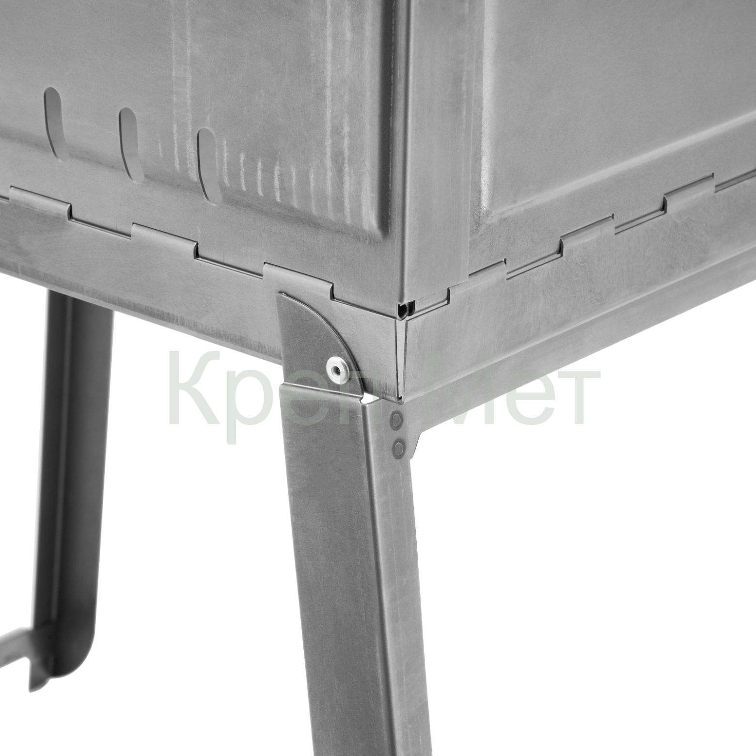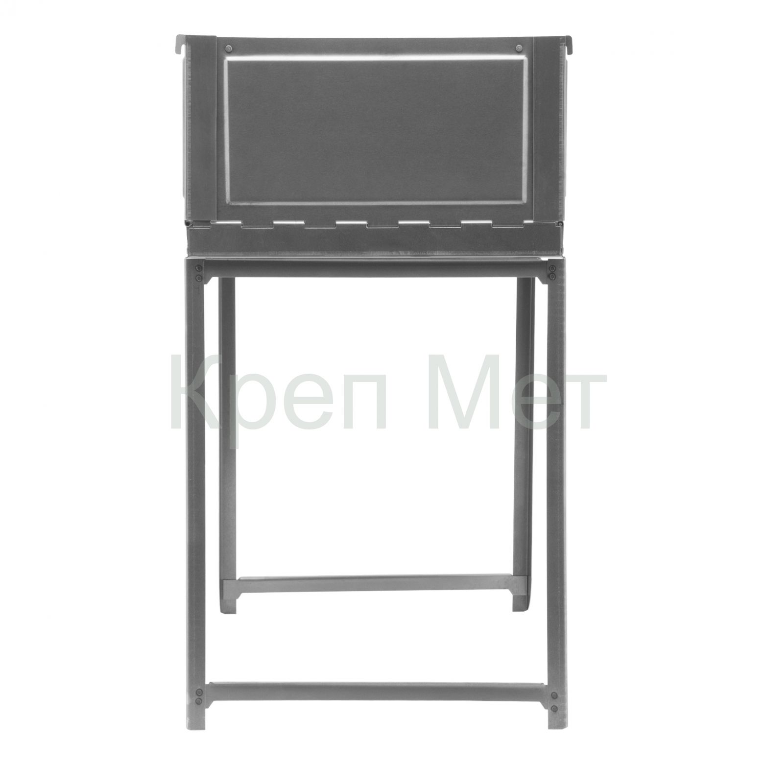 - Долгий срок службы — мангал изготовлен из жаропрочной углеродистой стали увеличенной толщины 1 мм, ребра жесткости повышают прочность конструкции.