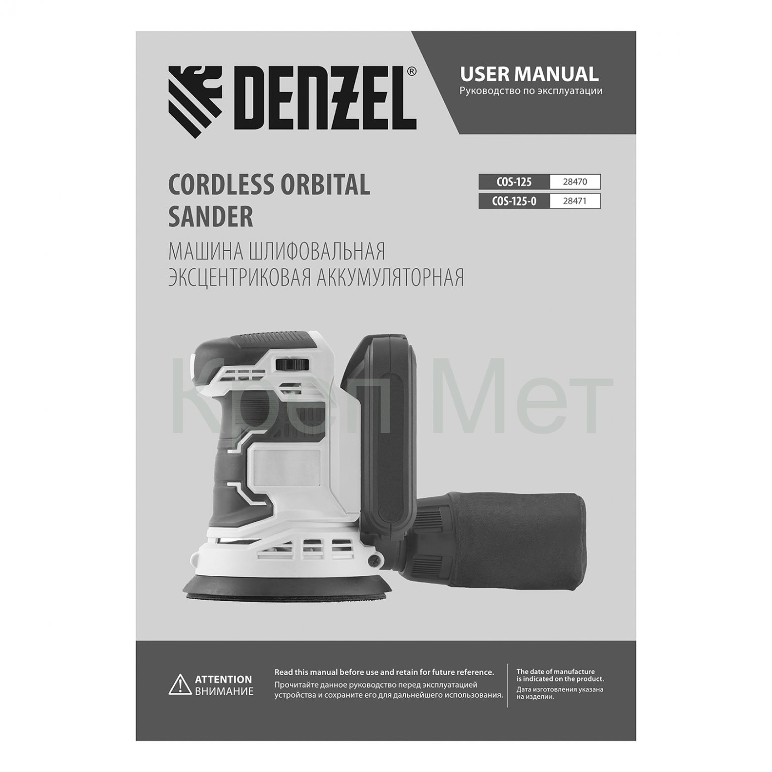 - Машина шлифовальная эксцентриковая аккумуляторная COS-125-0, 18В Li-Ion Denzel