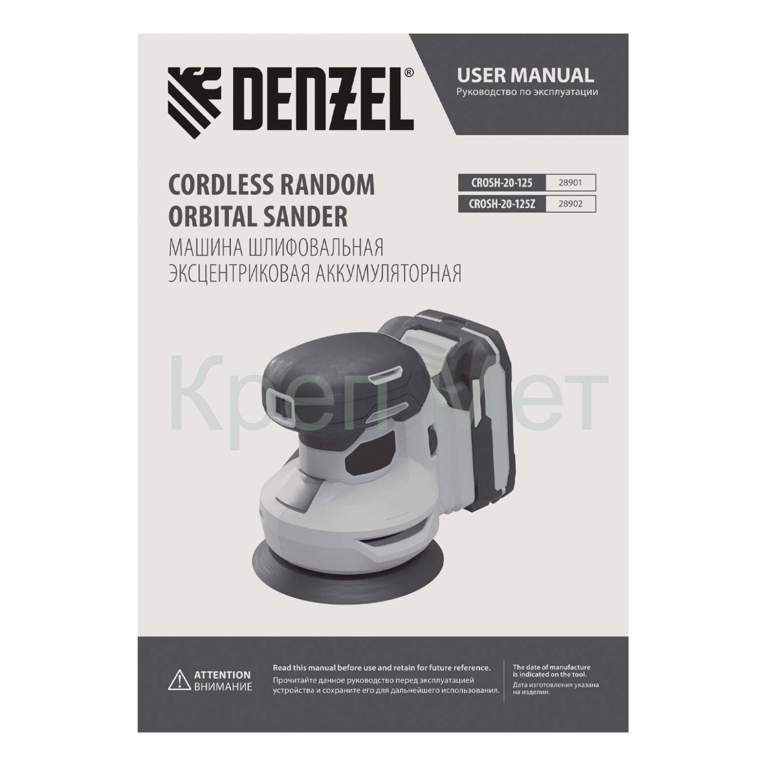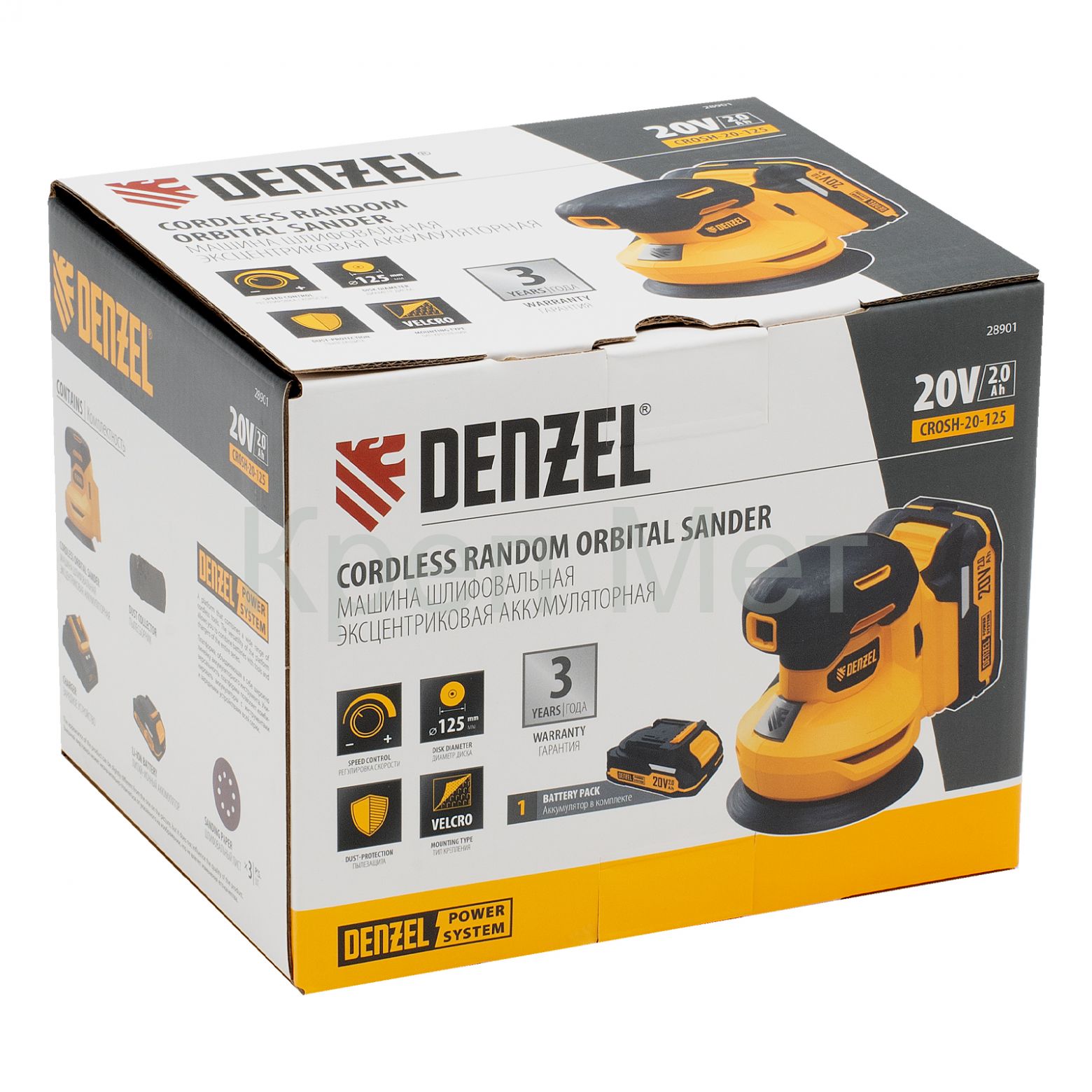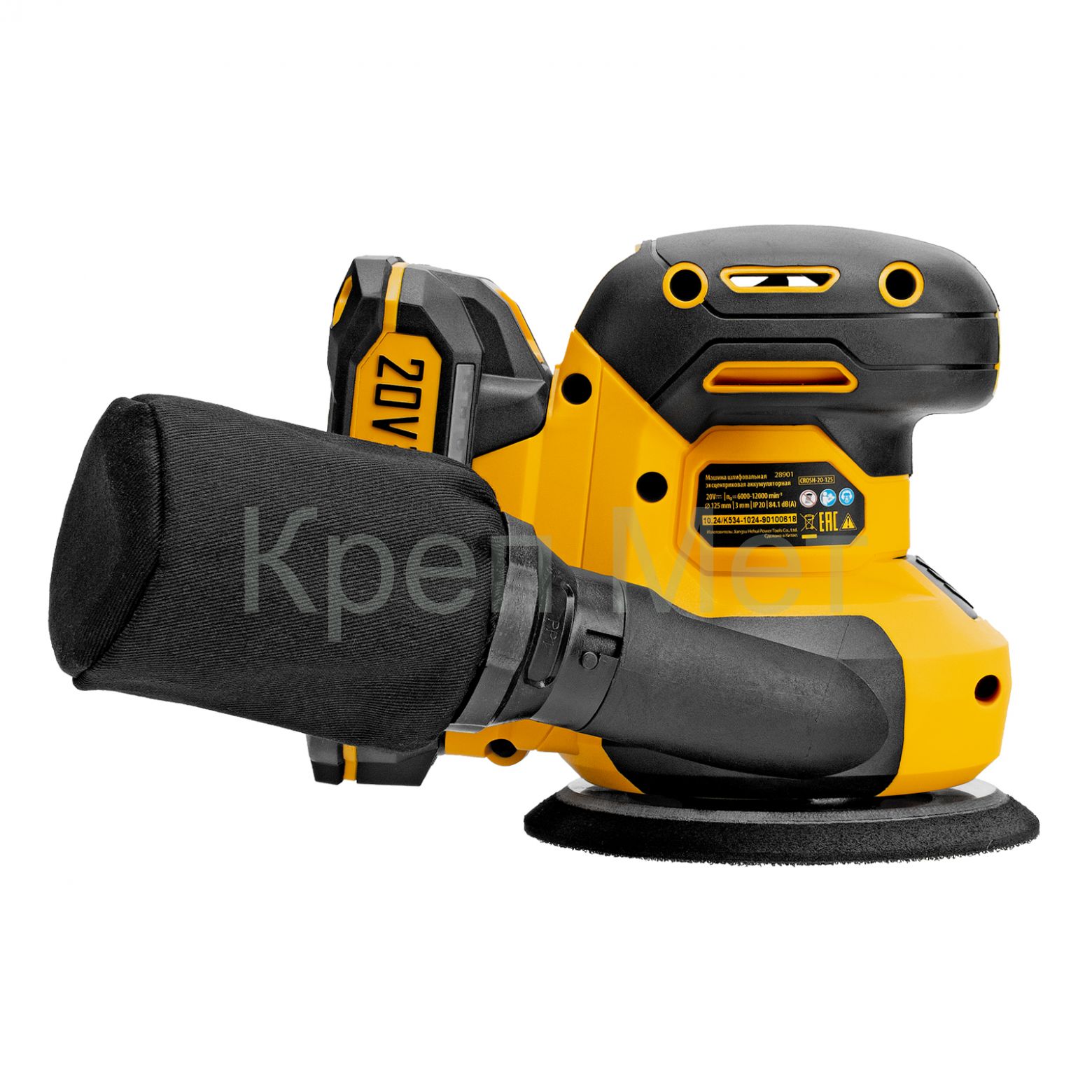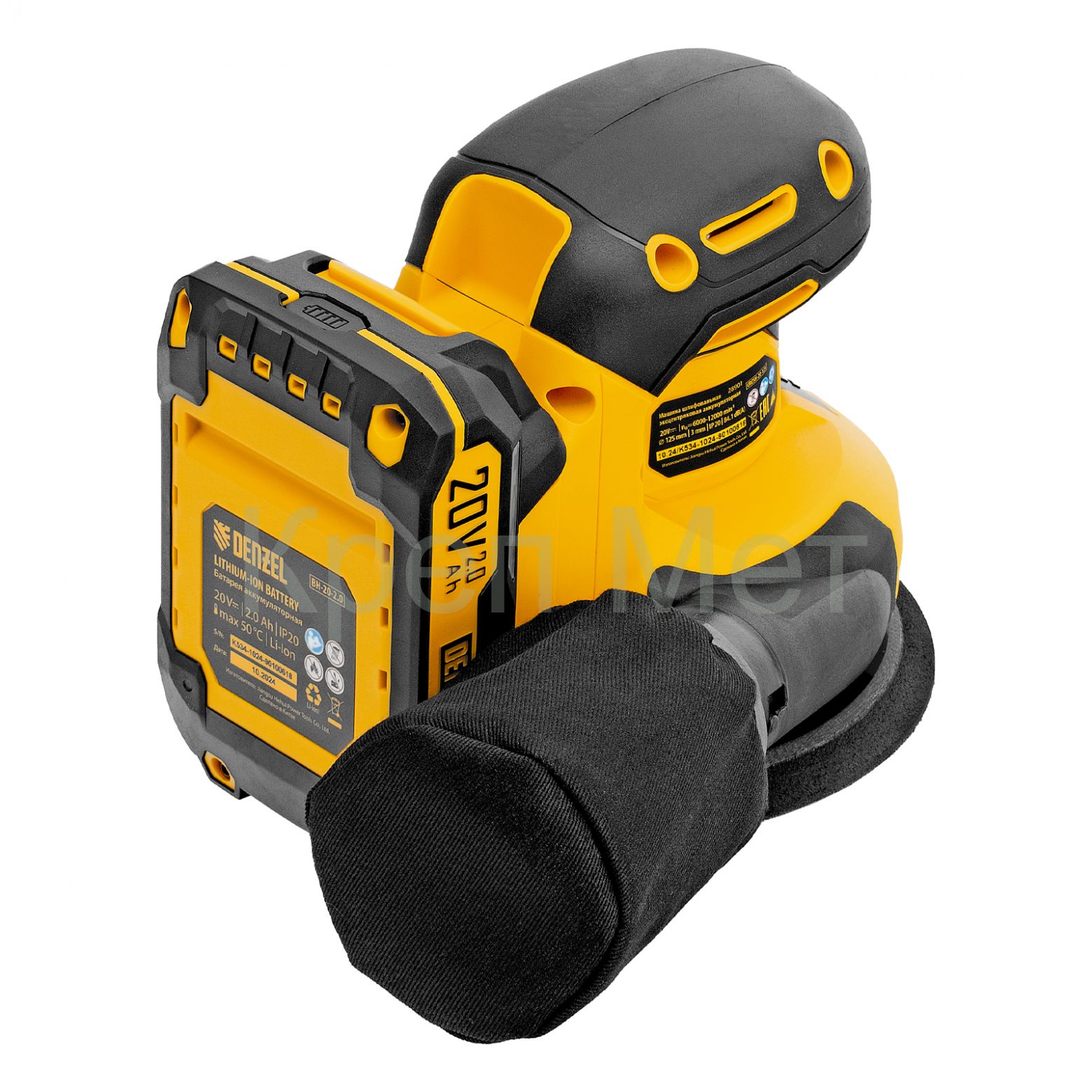 - Машина шлифовальная эксцентриковая аккумуляторная CROSH-20-125, Li-Ion, 20 В// Denzel