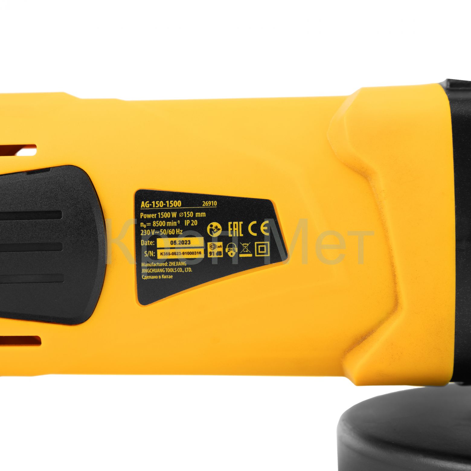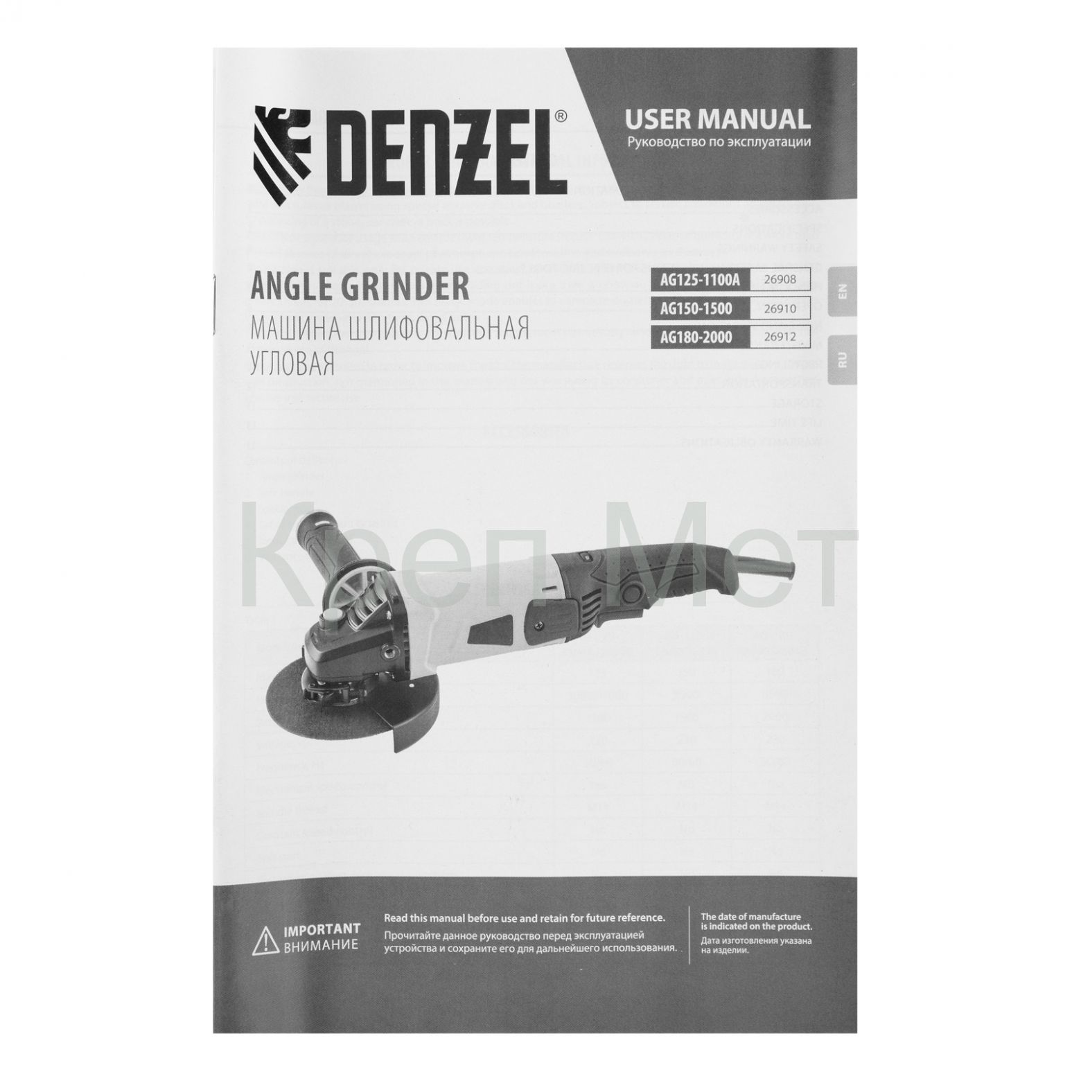 - Машина шлифовальная угловая AG150-1500, 1500 Вт, 150 мм, 8500 об/мин Denzel