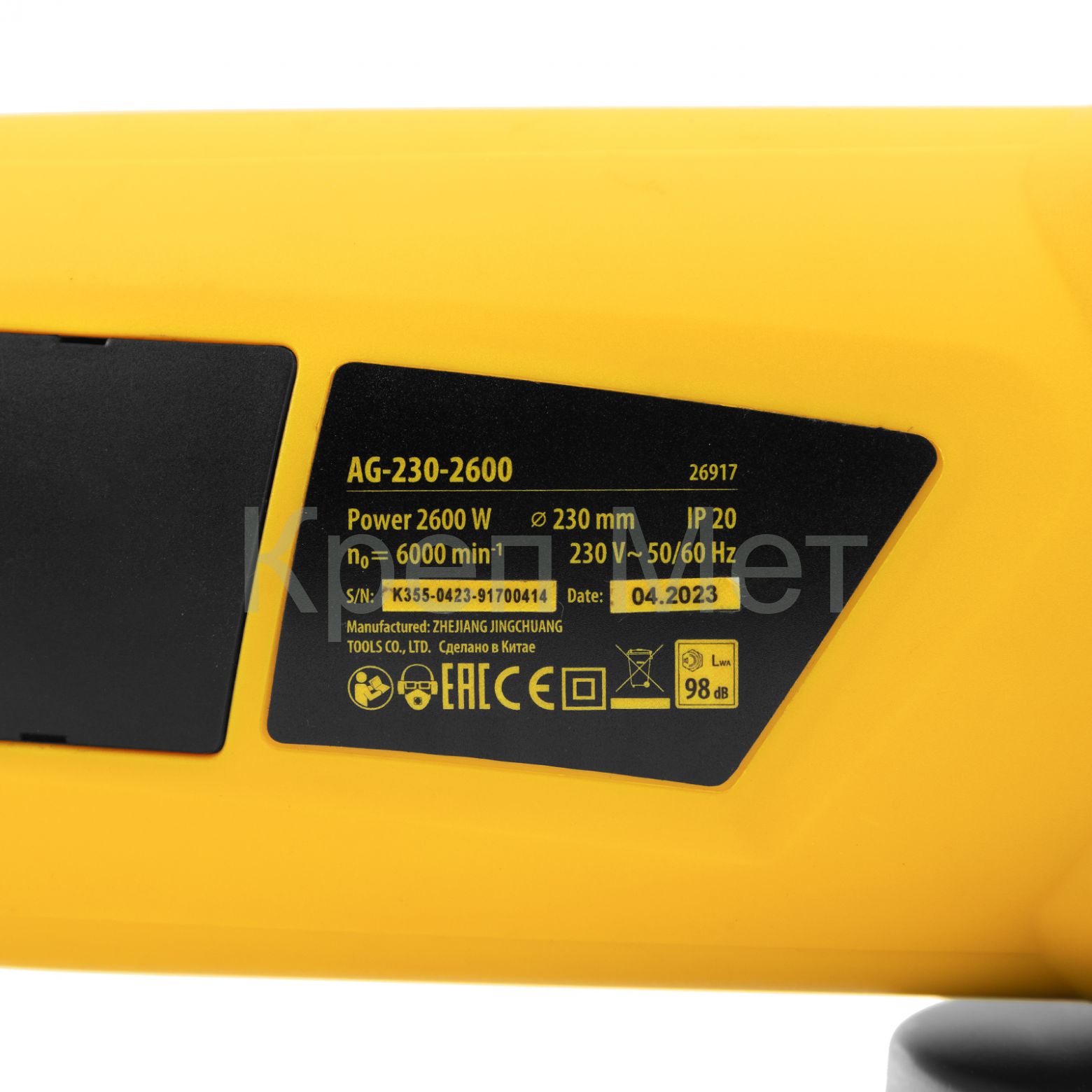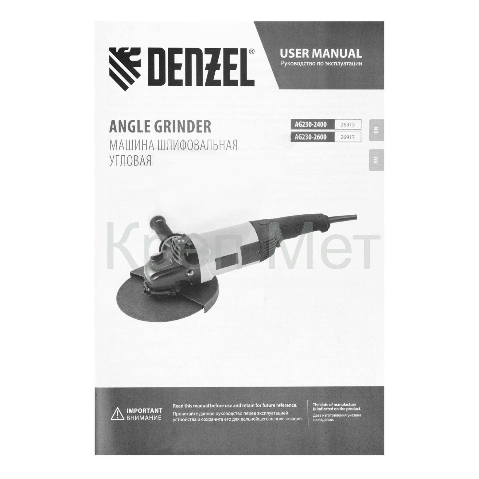 - Машина шлифовальная угловая AG230-2600, 2600 Вт, 230 мм, 6000 об/мин Denzel