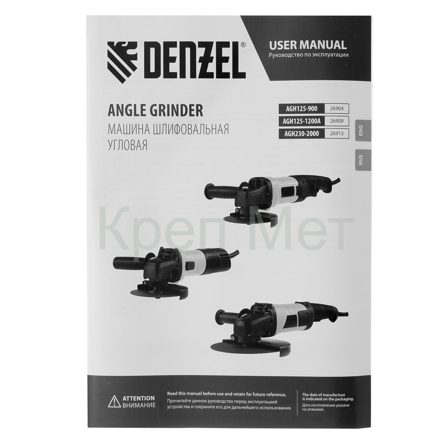 - Машина шлифовальная угловая AGH125-1200A, 1200 Вт, 125 мм, 11000 об/мин Denzel