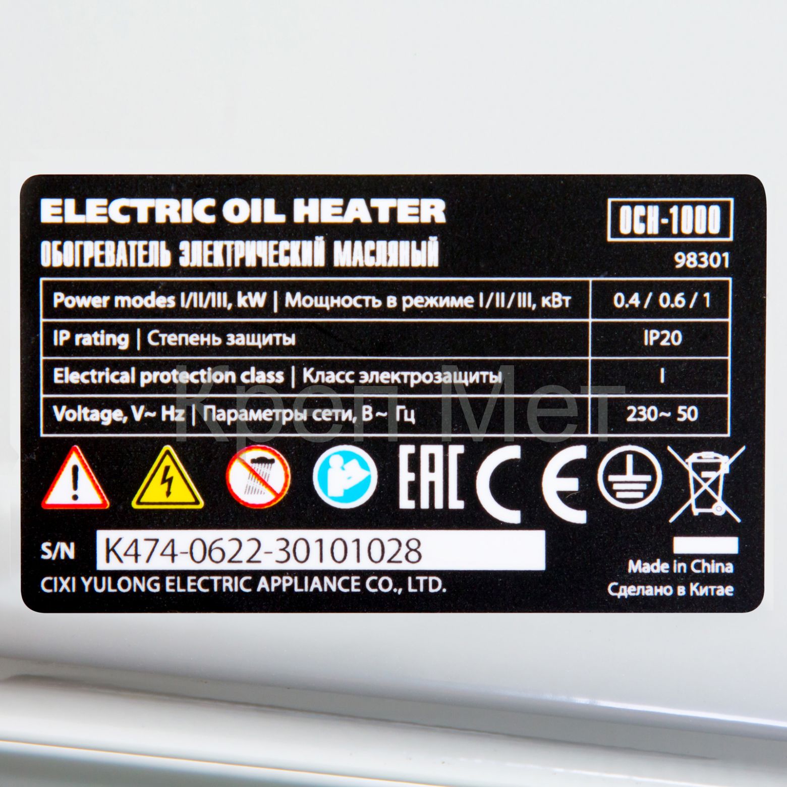 Масляный обогреватель - 1 штКолесные опоры с креплением - 2 штРуководство по эксплуатации - 1 шт