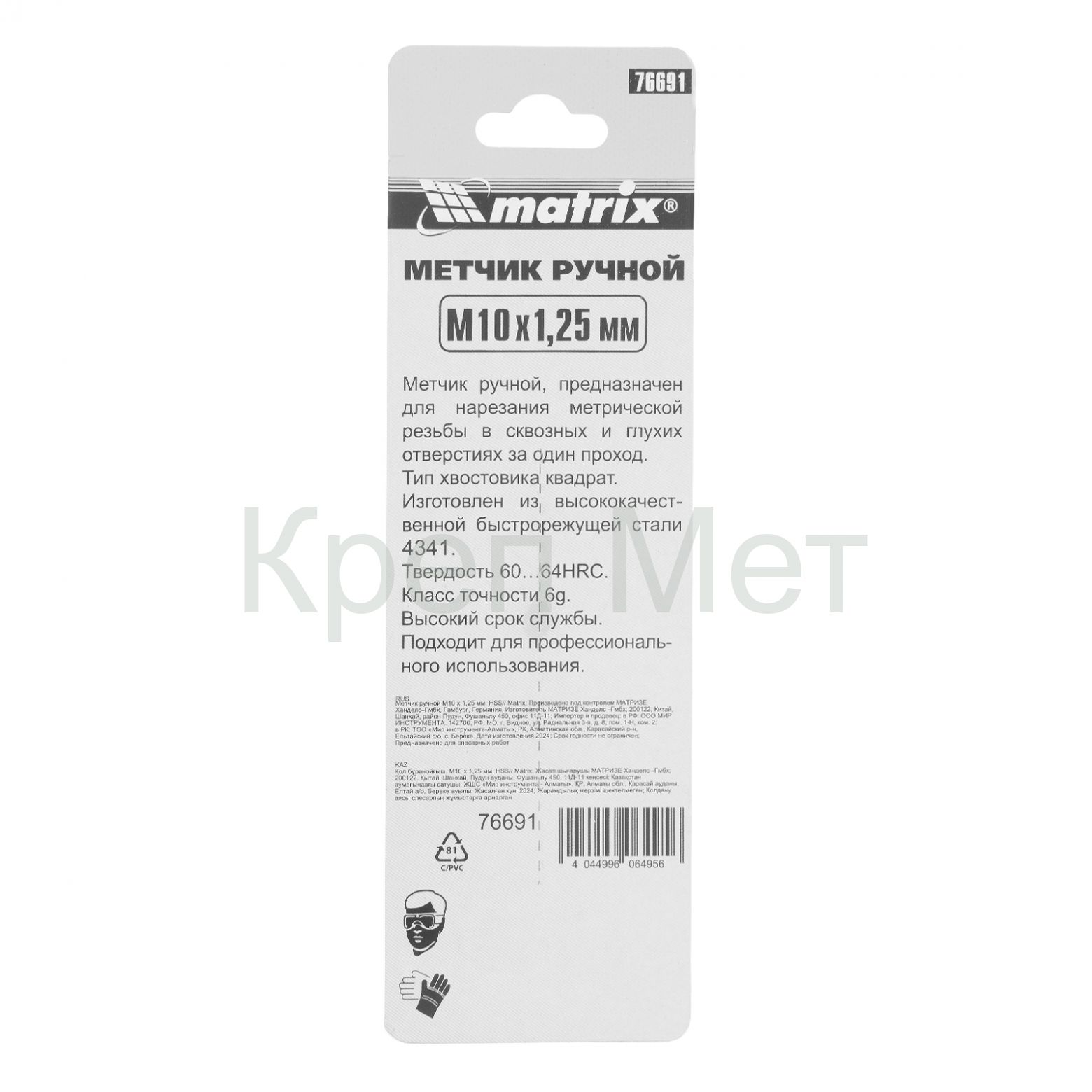 Метчик ручной М10 х 1.25 мм, Р6М5 Matrix