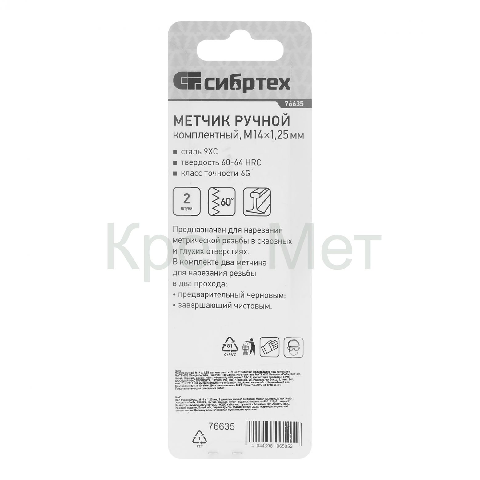 - Высокая точность резьбы — в наборе 2 метчика: черновой для первого прохода и чистовой для финишной доводки.