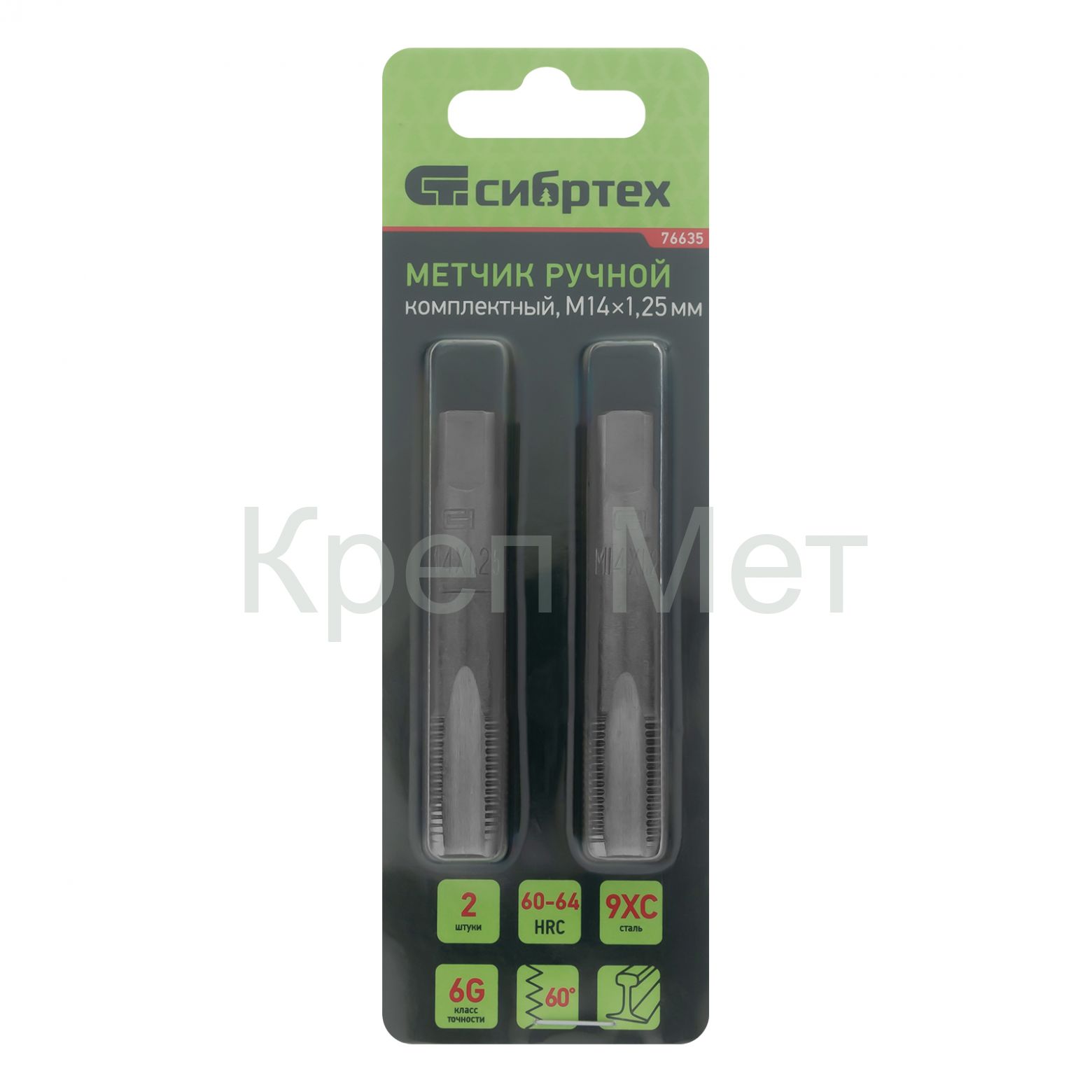 - Метчик ручной М14 х 1.25 мм, комплект из 2 шт Сибртех