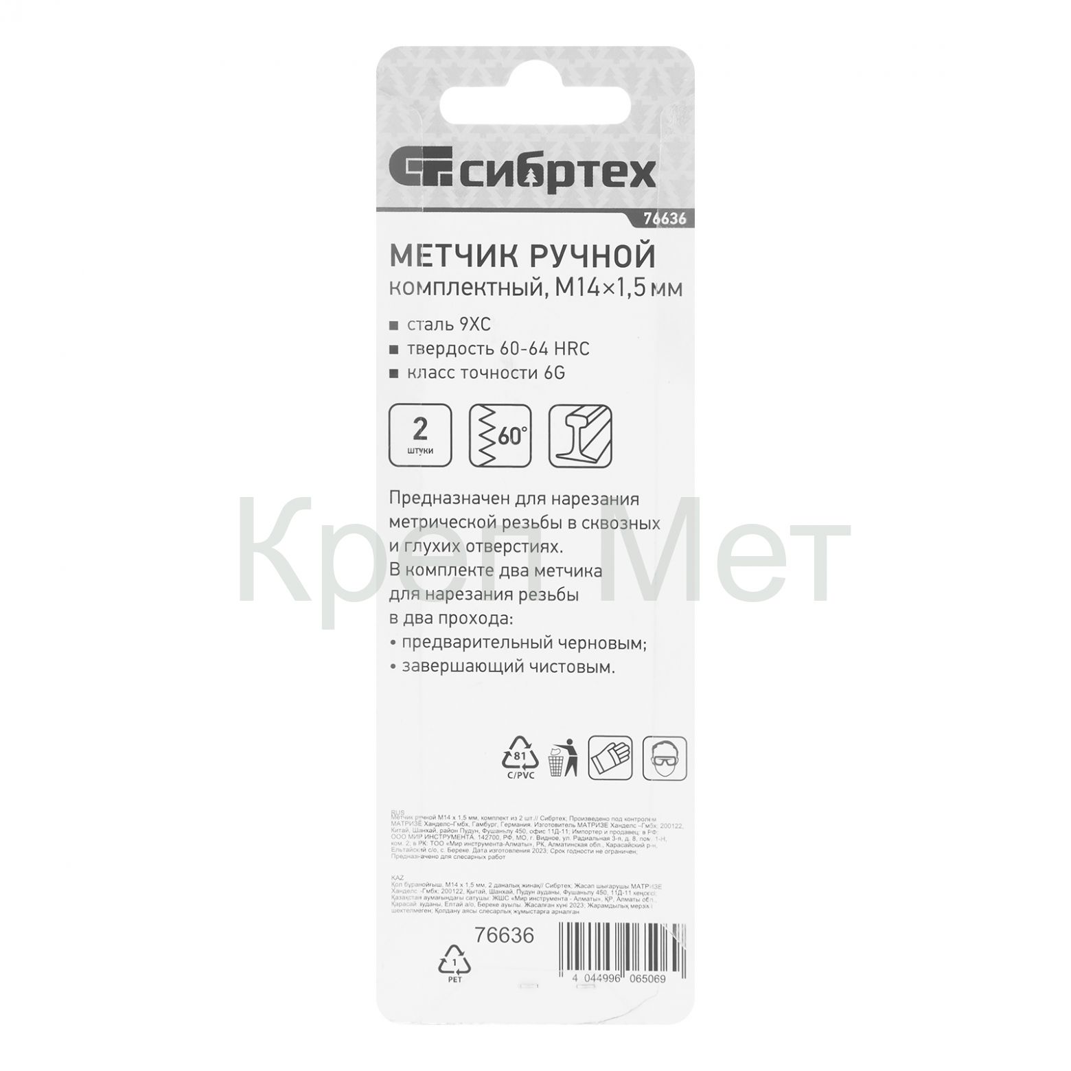 - Высокая точность резьбы — в наборе 2 метчика: черновой для первого прохода и чистовой для финишной доводки.