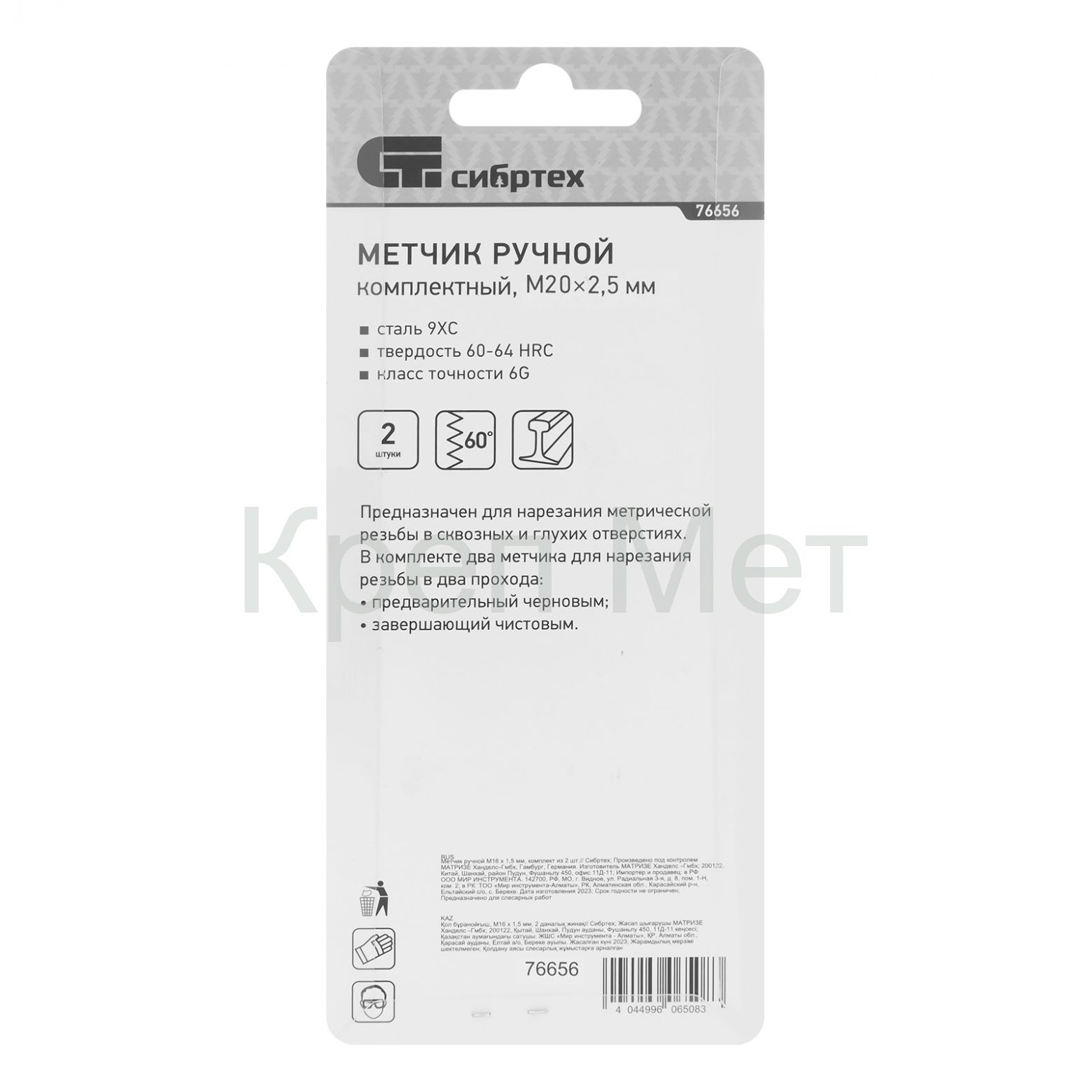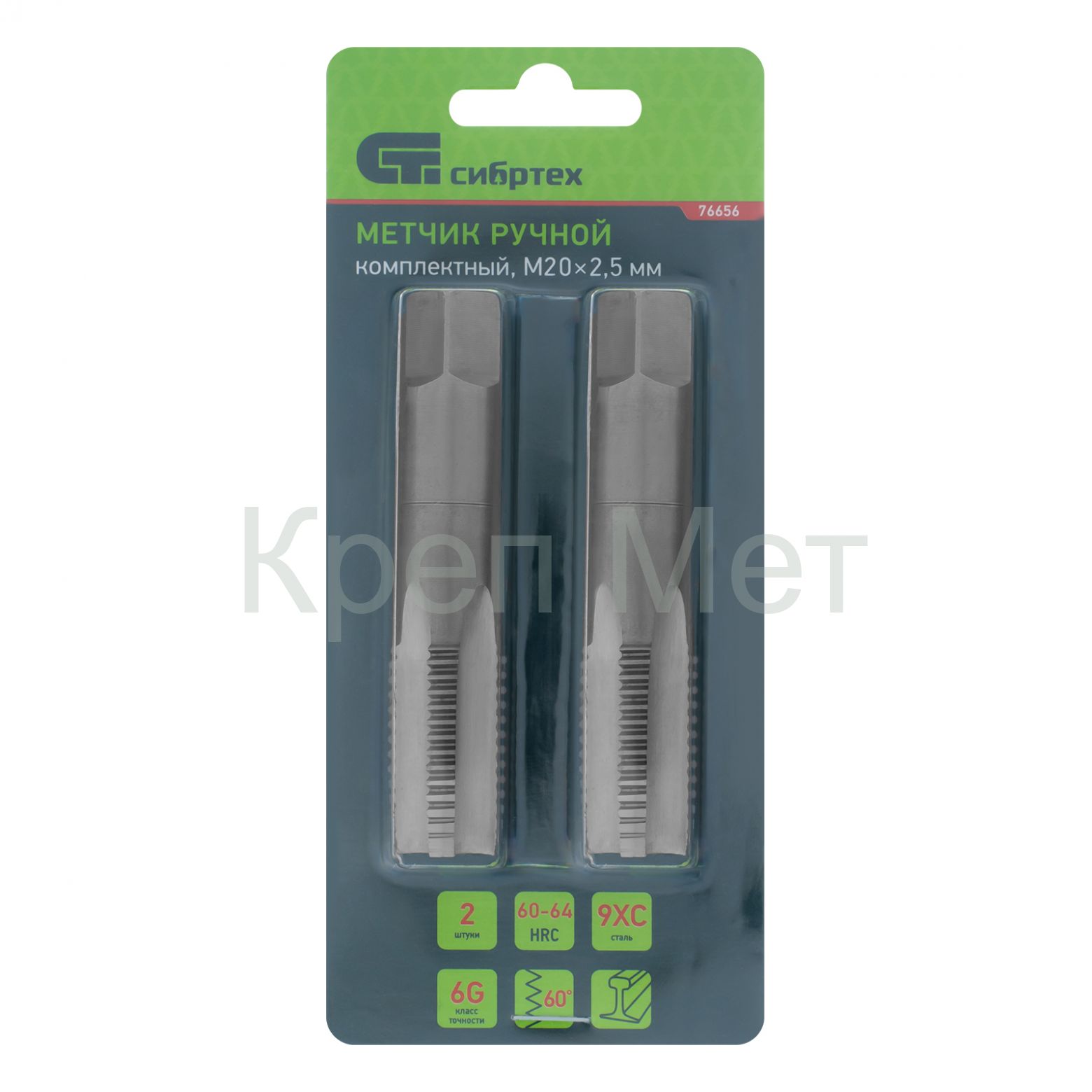 Метчик ручной М20 х 2.5 мм, комплект из 2 шт Сибртех