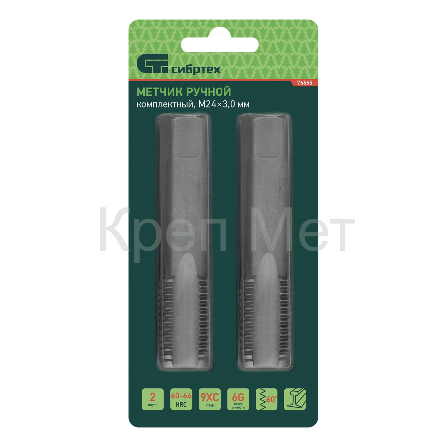 - Метчик ручной М24 х 3 мм, комплект из 2 шт Сибртех