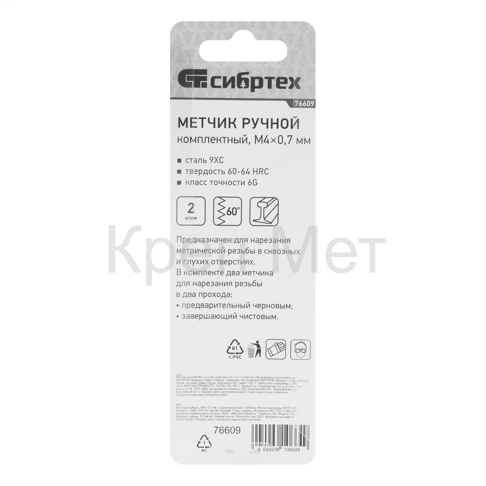 - Высокая точность резьбы — в наборе 2 метчика: черновой для первого прохода и чистовой для финишной доводки.