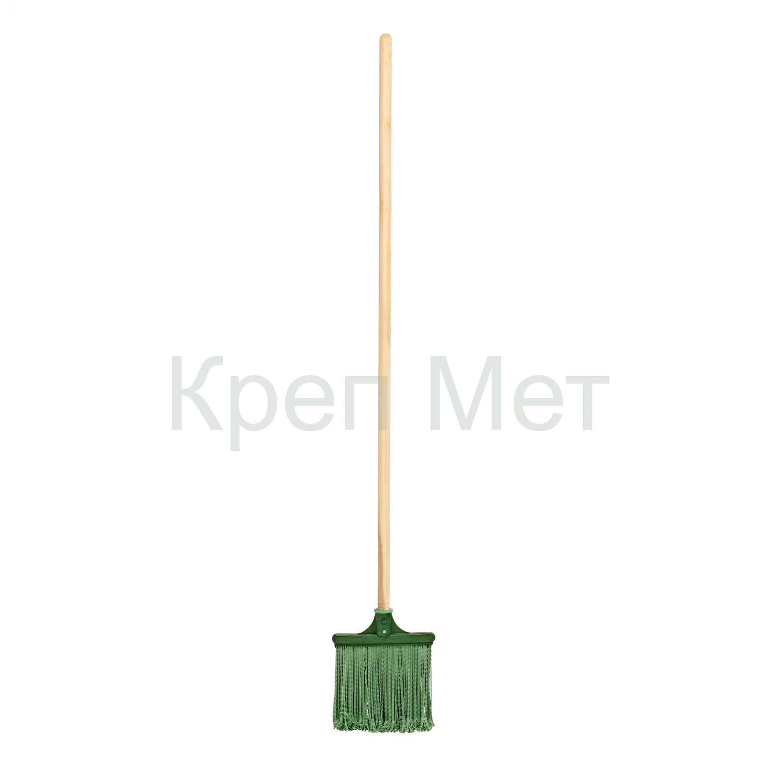- Метла полипропиленовая, 240 х 160 х 1400 мм, плоская распушенная, деревянный черенок, Сибртех