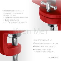 - Поворотное основание позволяет перемещать корпус тисков в горизонтально плоскости и фиксировать его в необходимом положение