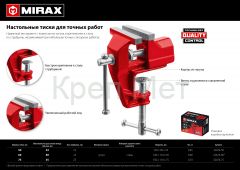 Тиски настольные MIRAX изготовлены из чугуна и предназначены для надежного закрепления мелких деталей при выполнении точных слесарных работ