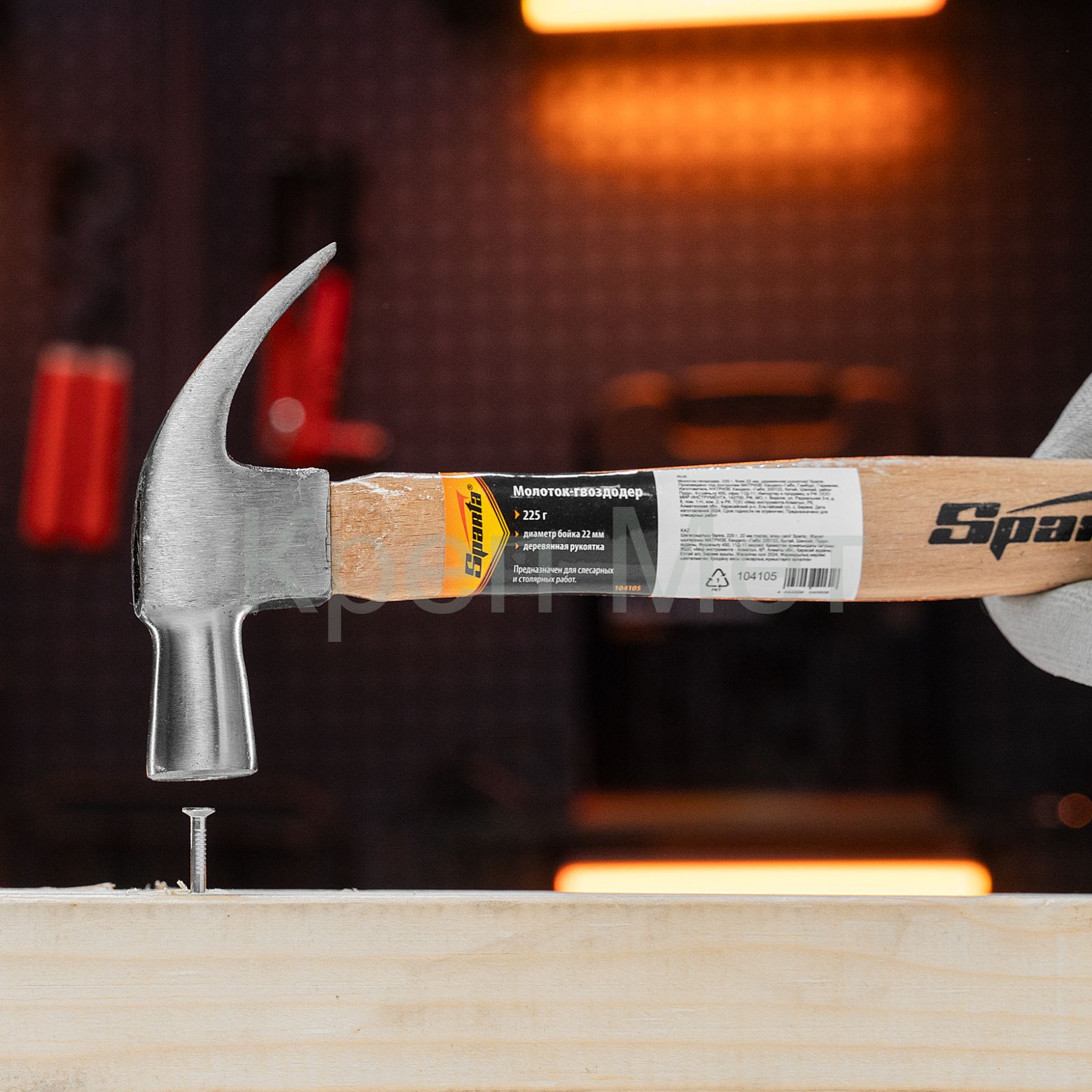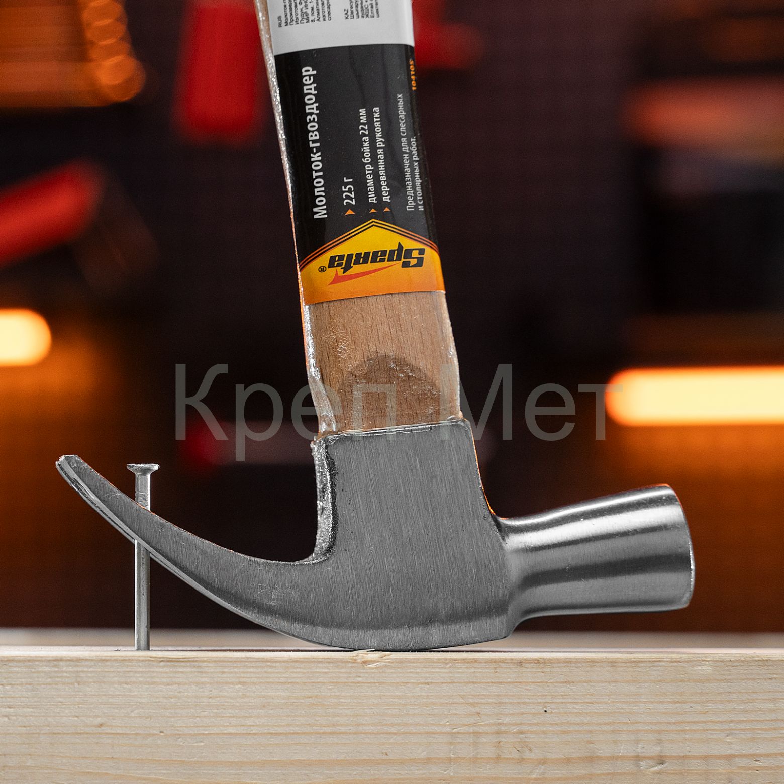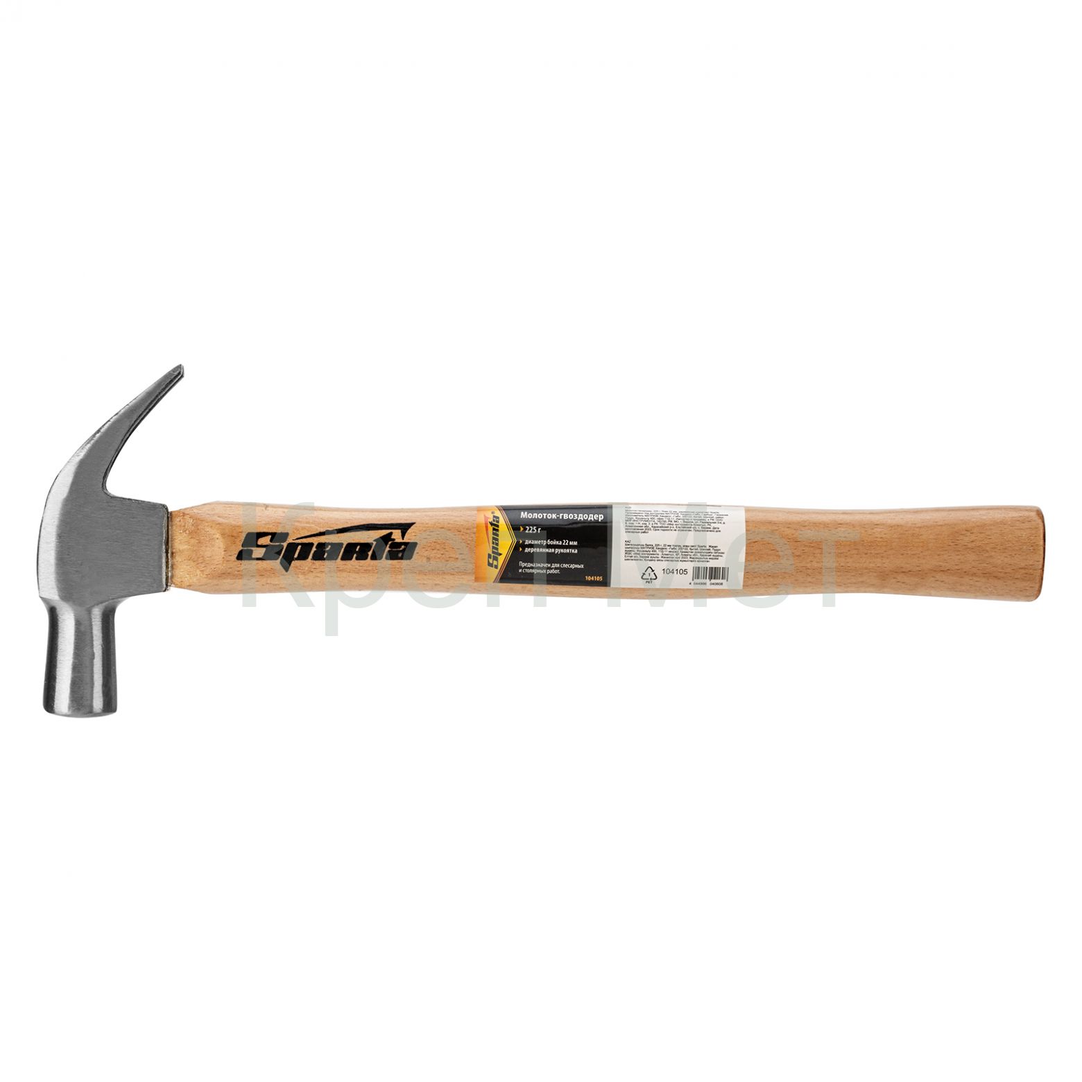 - Молоток-гвоздодер, 225 г, боек 22 мм, деревянная рукоятка Sparta