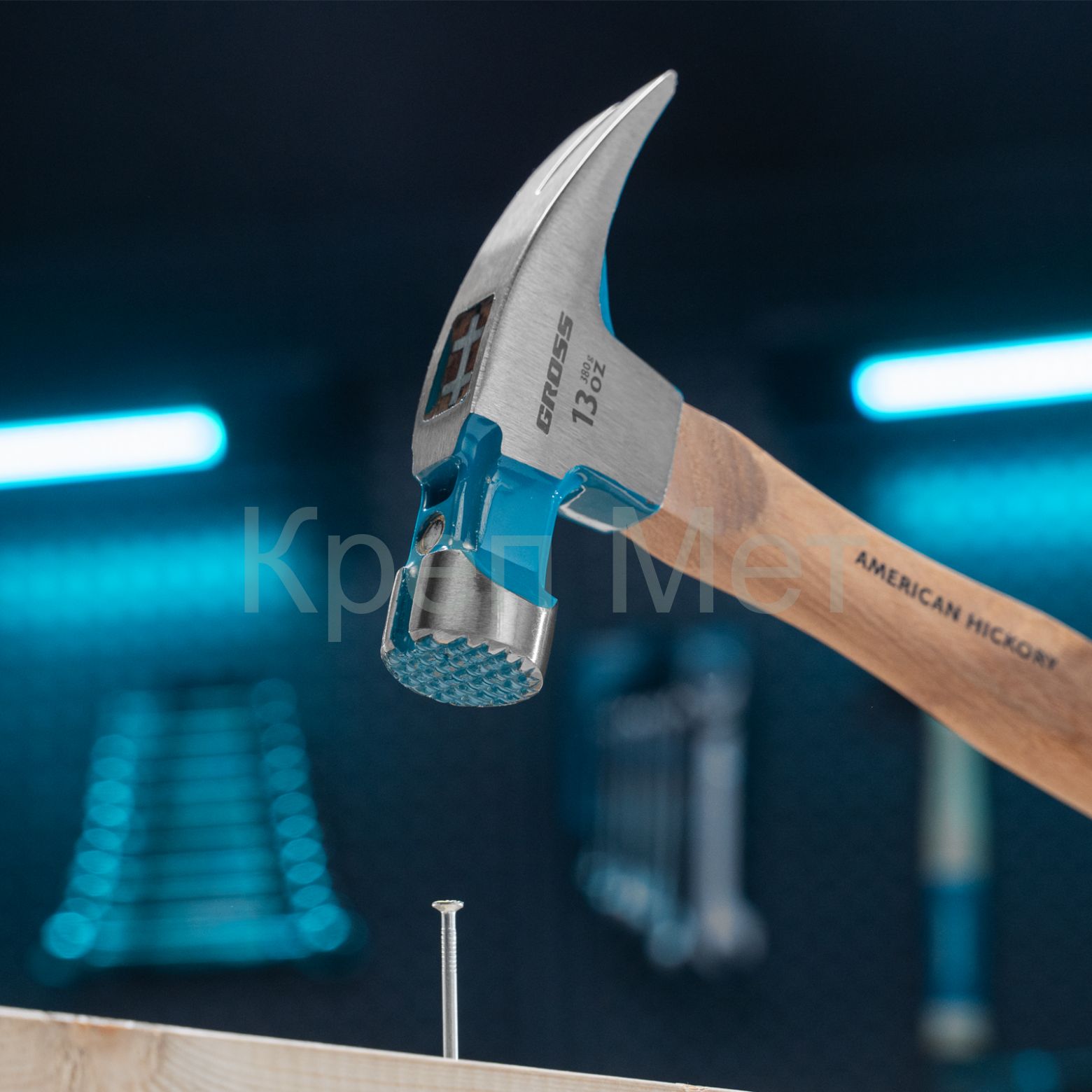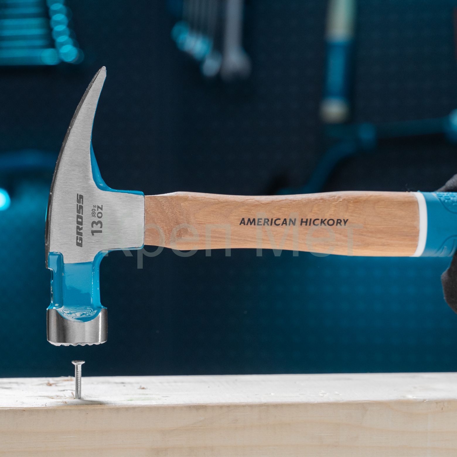 - Молоток-гвоздодер, 380 г, угол 75, магнит, обрезиненная рукоятка AMERICAN HICKORY GROSS