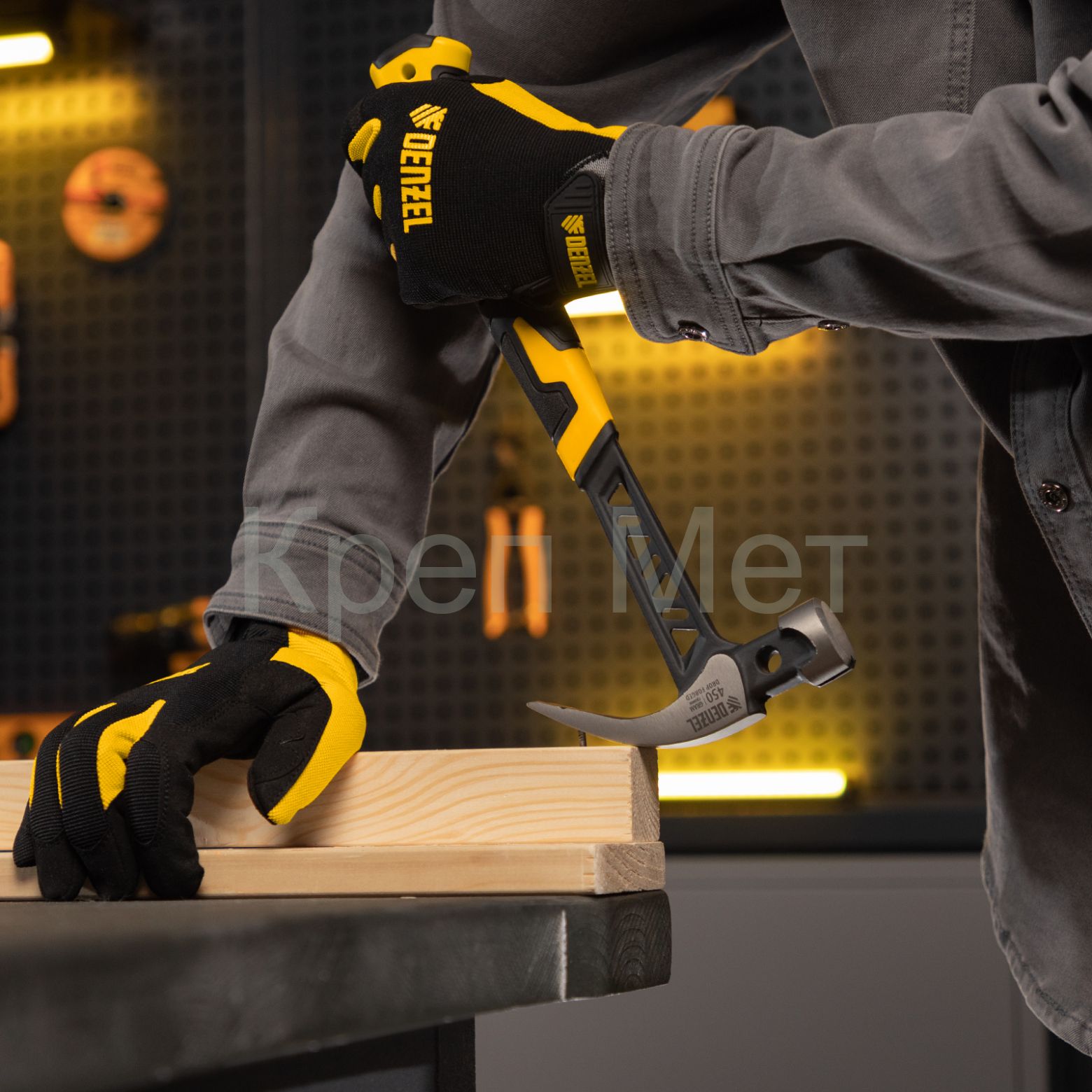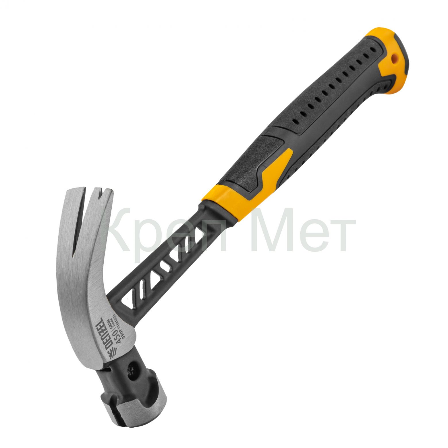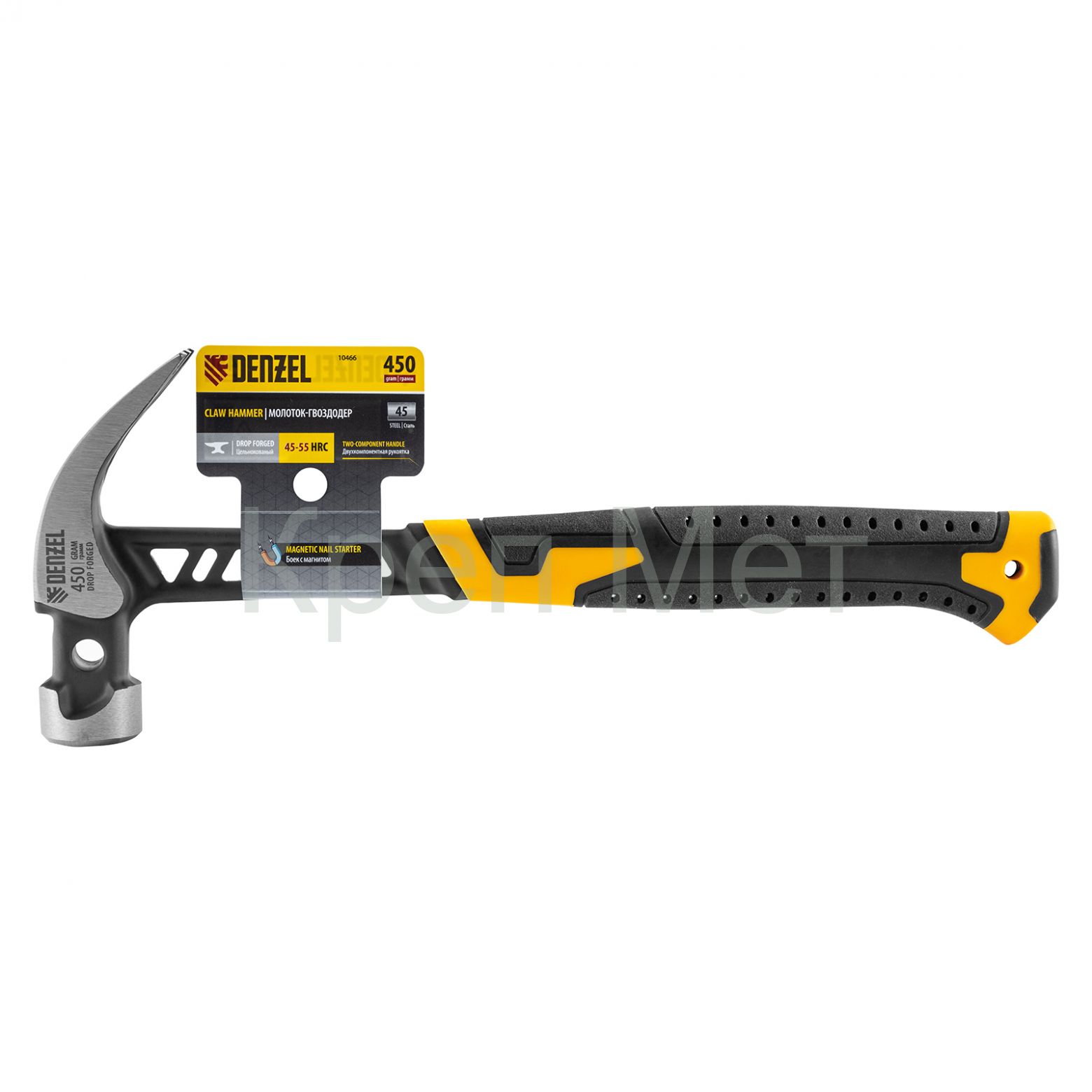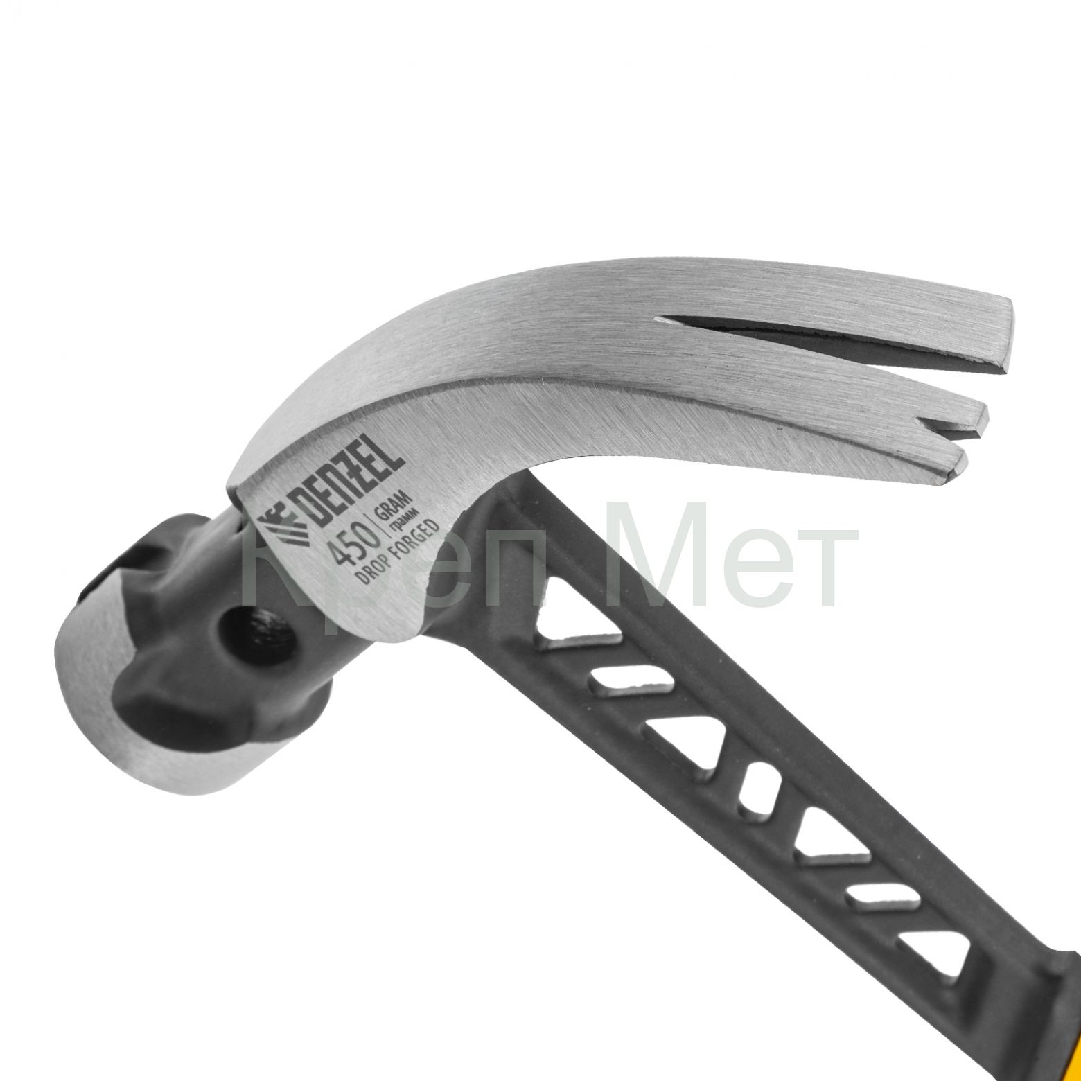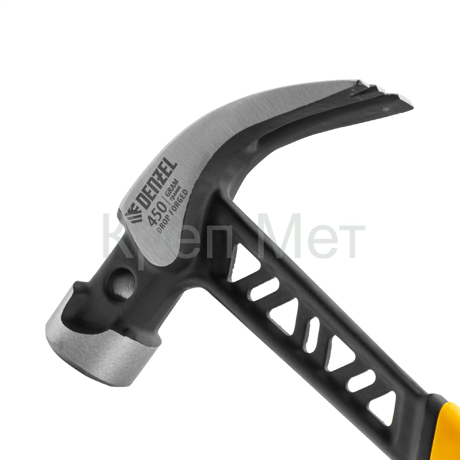 - Молоток-гвоздодер 450 г, цельнокованый,боек с магнитом, двухкомп. обрезин. рук-ка Denzel