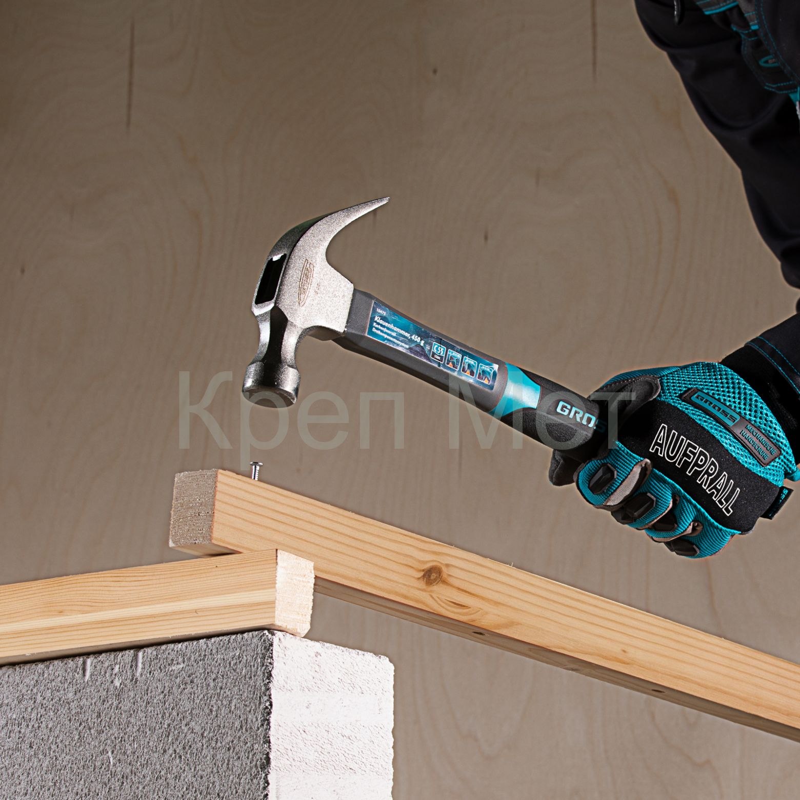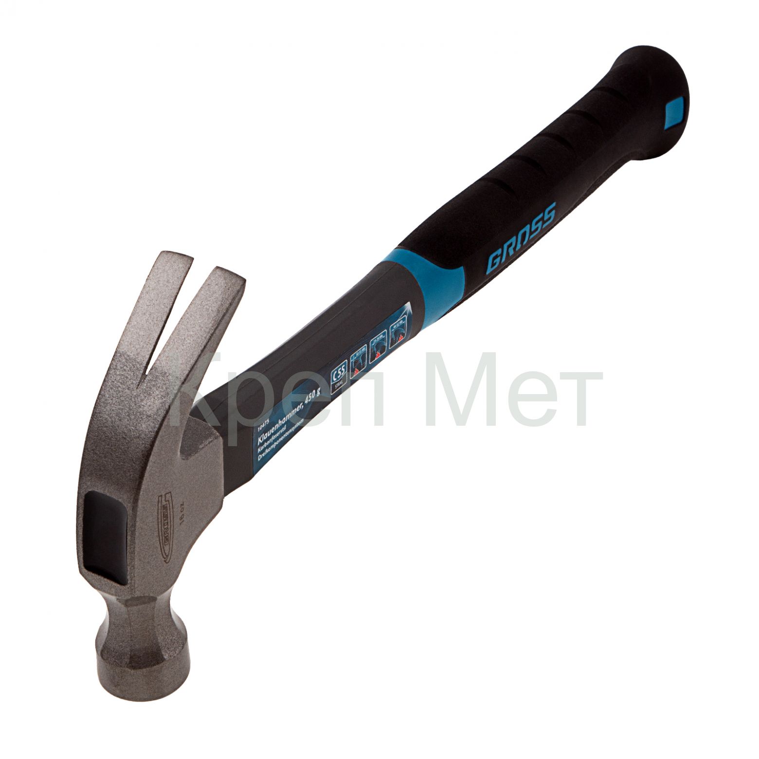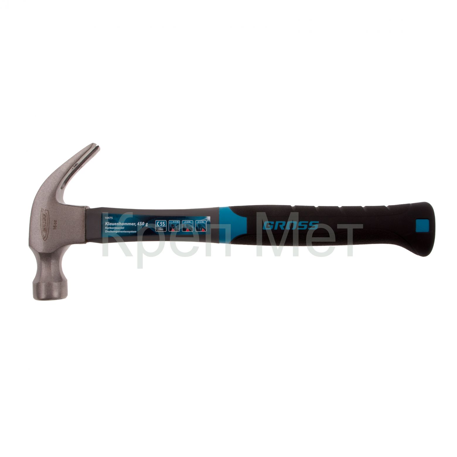 - Молоток-гвоздодер, 450 г, фибергласовая трехкомпонентная рукоятка Gross