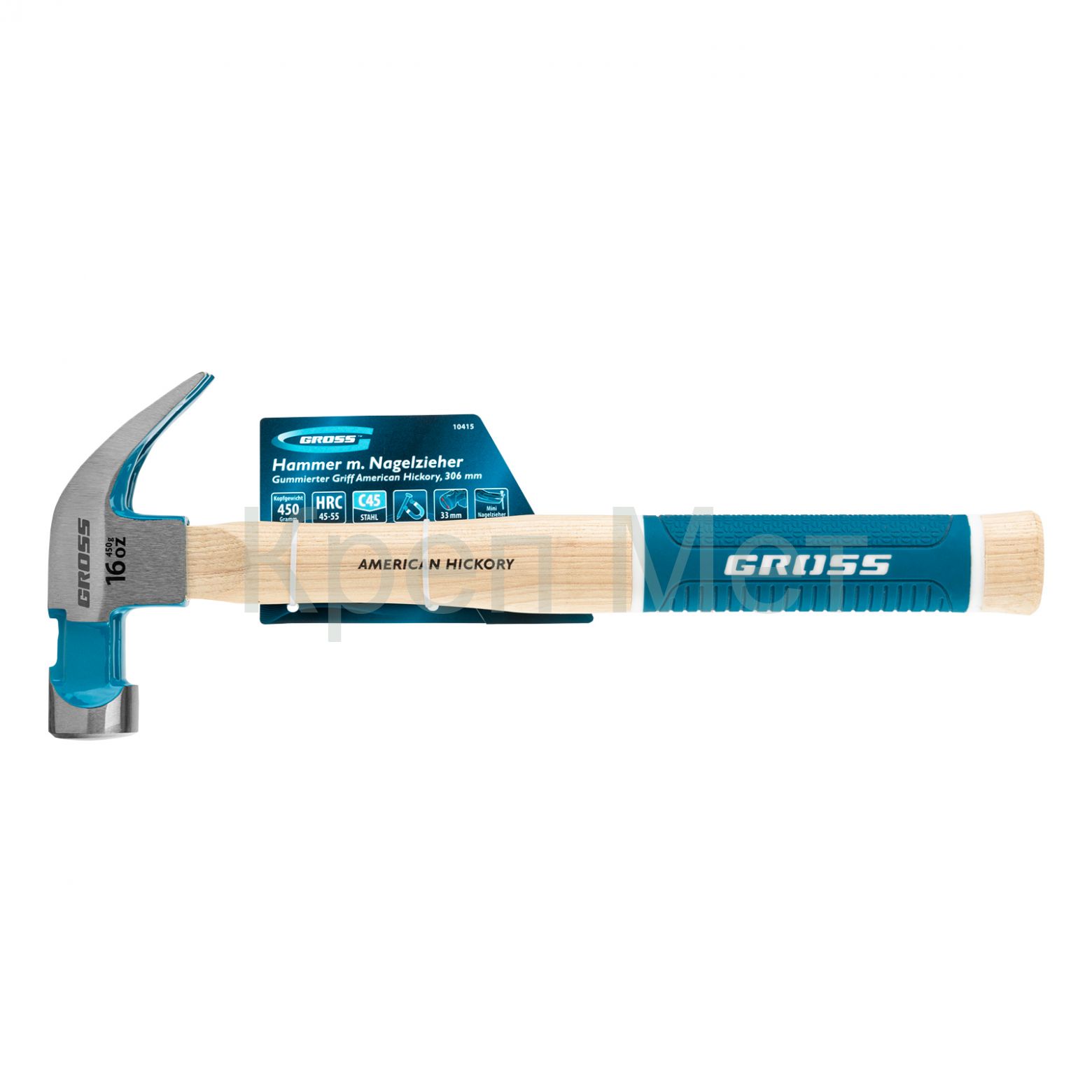 Молоток-гвоздодер, 450 г, угол 45, магнит, обрезиненная рукоятка American hickory GROSS