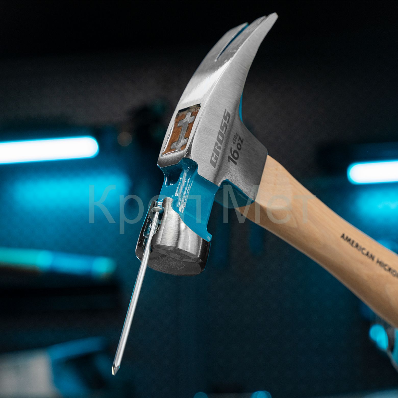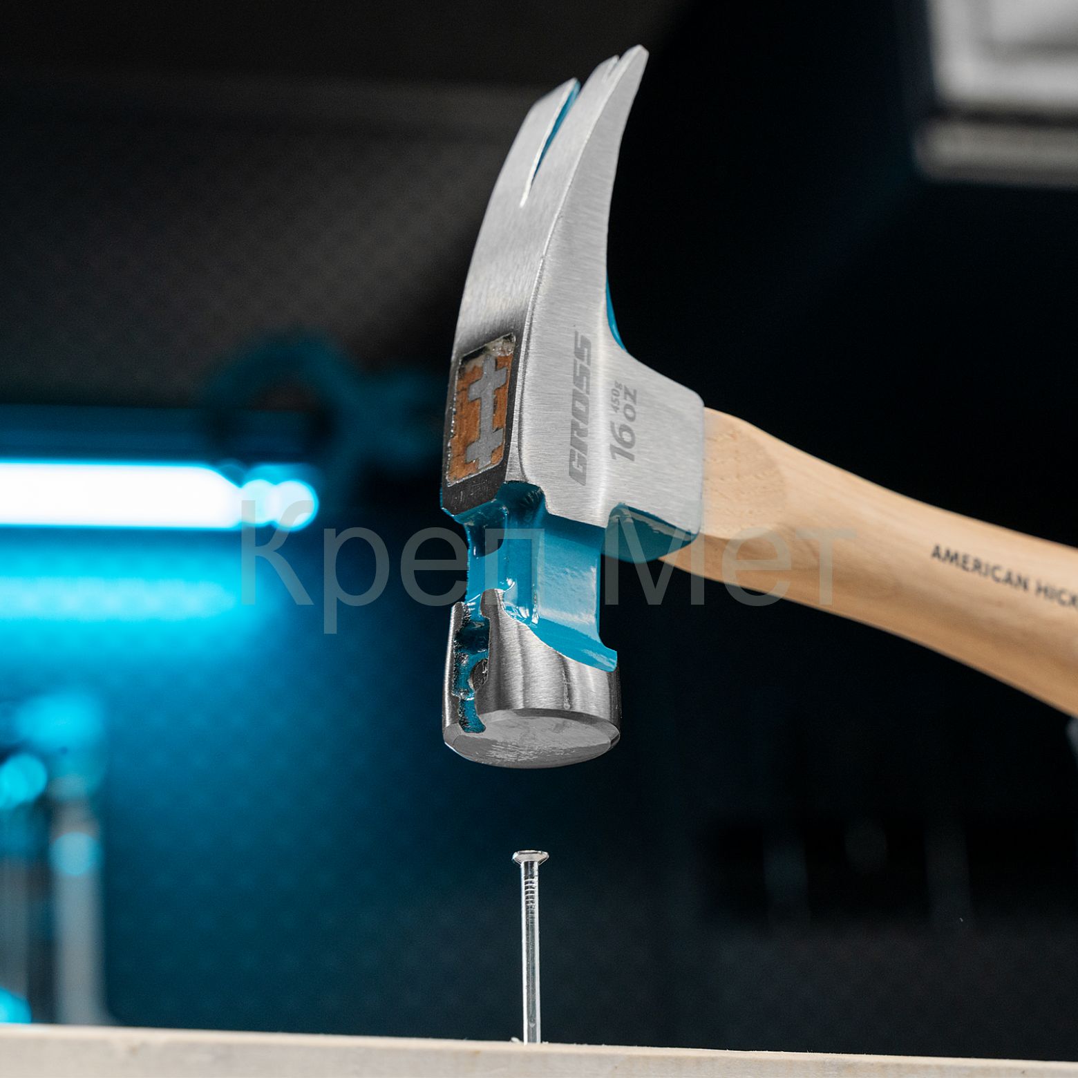 - Молоток-гвоздодер, 450 г, угол 75, магнит, обрезиненная рукоятка American hickory GROSS