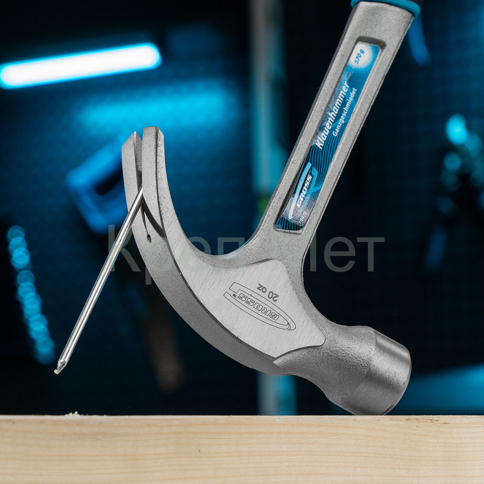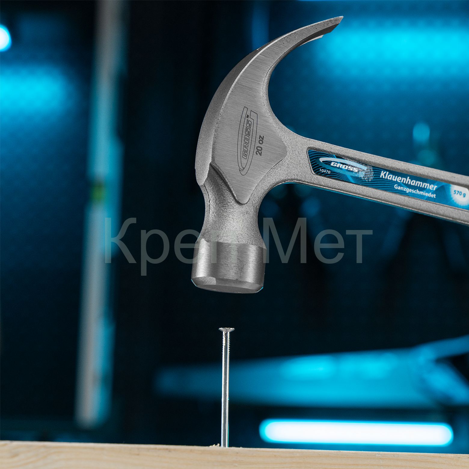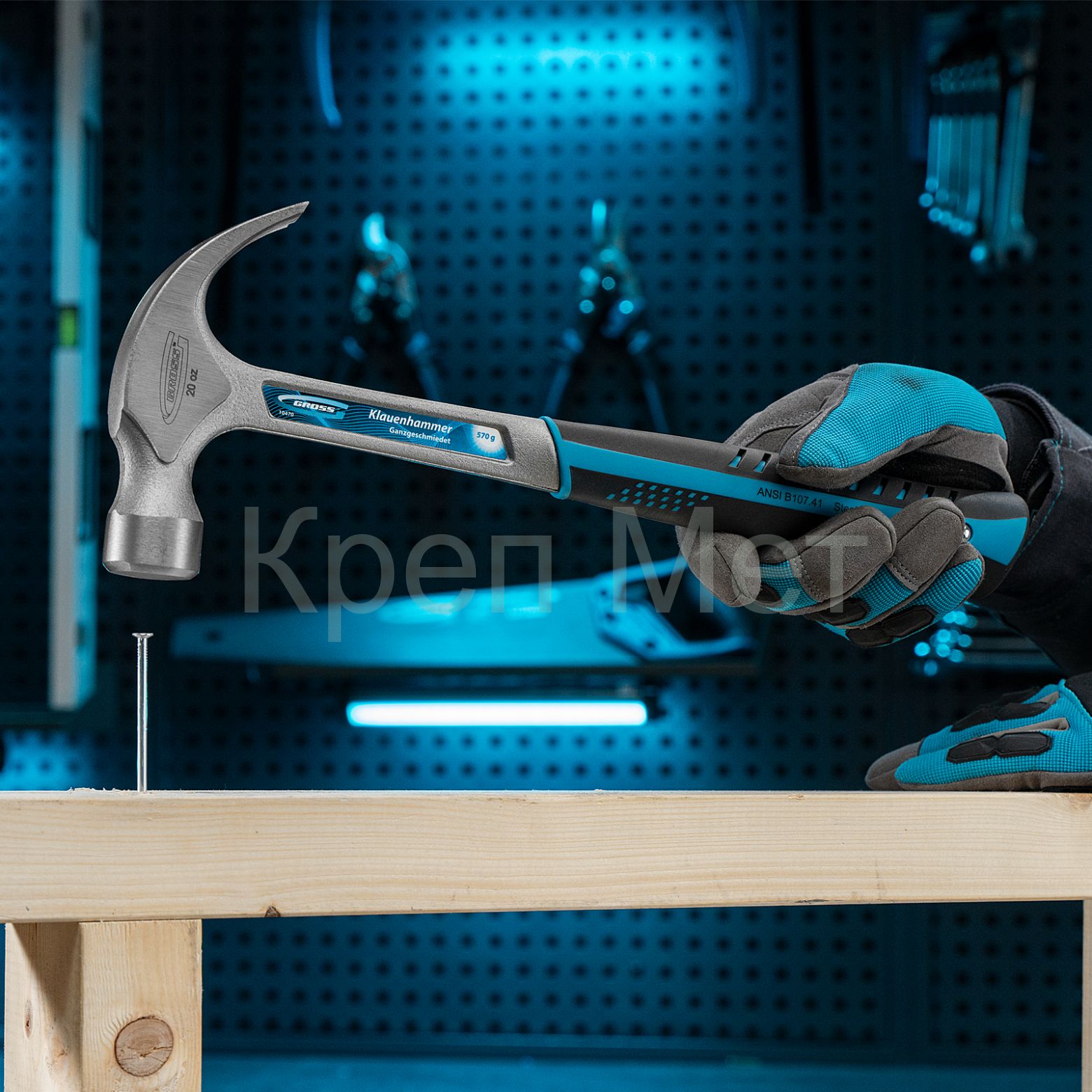 - Молоток-гвоздодер, 570 г, цельнокованый, трехкомпонентная рукоятка Gross