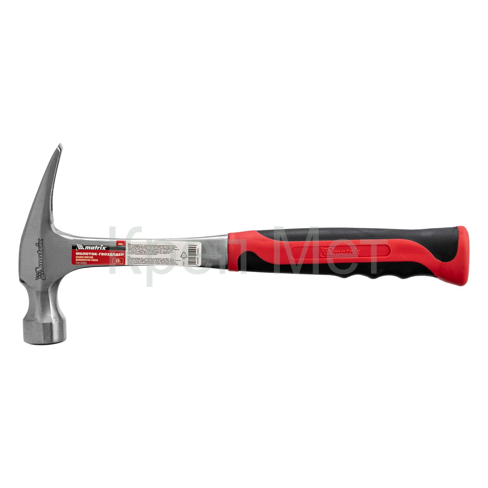 - Молоток-гвоздодер, 570 г, цельнометаллический, двухкомпонентная рукоятка Matrix