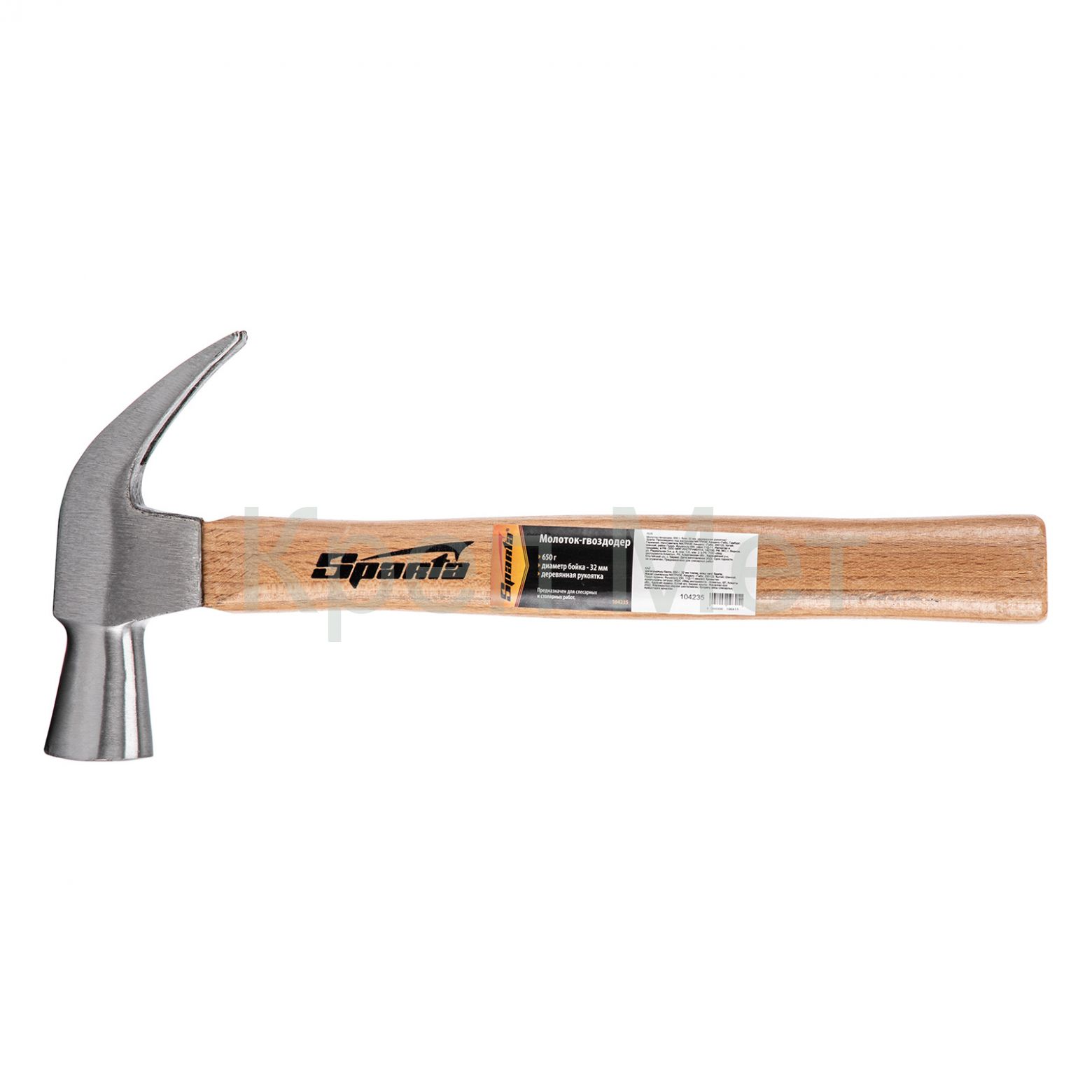 - Молоток-гвоздодер, 650 г, боек 32 мм, деревянная рукоятка Sparta