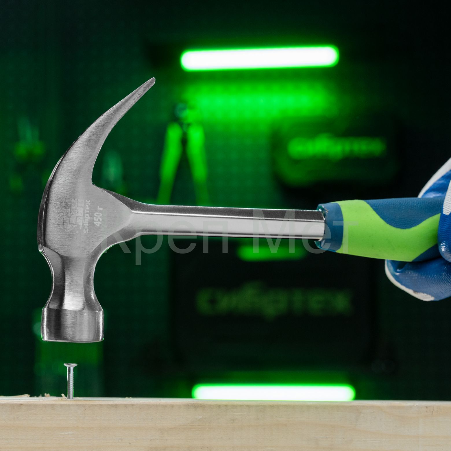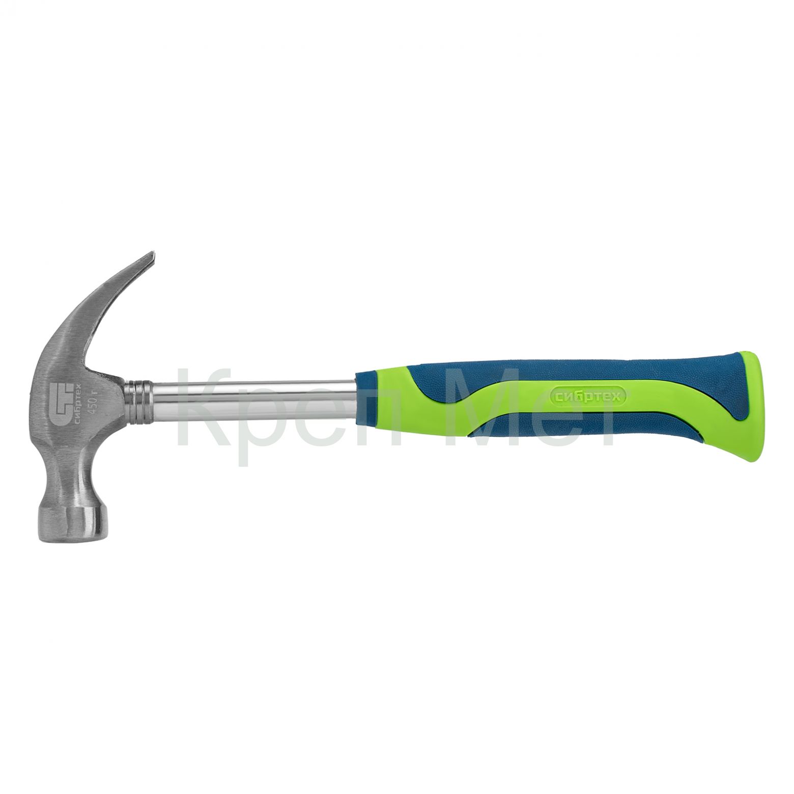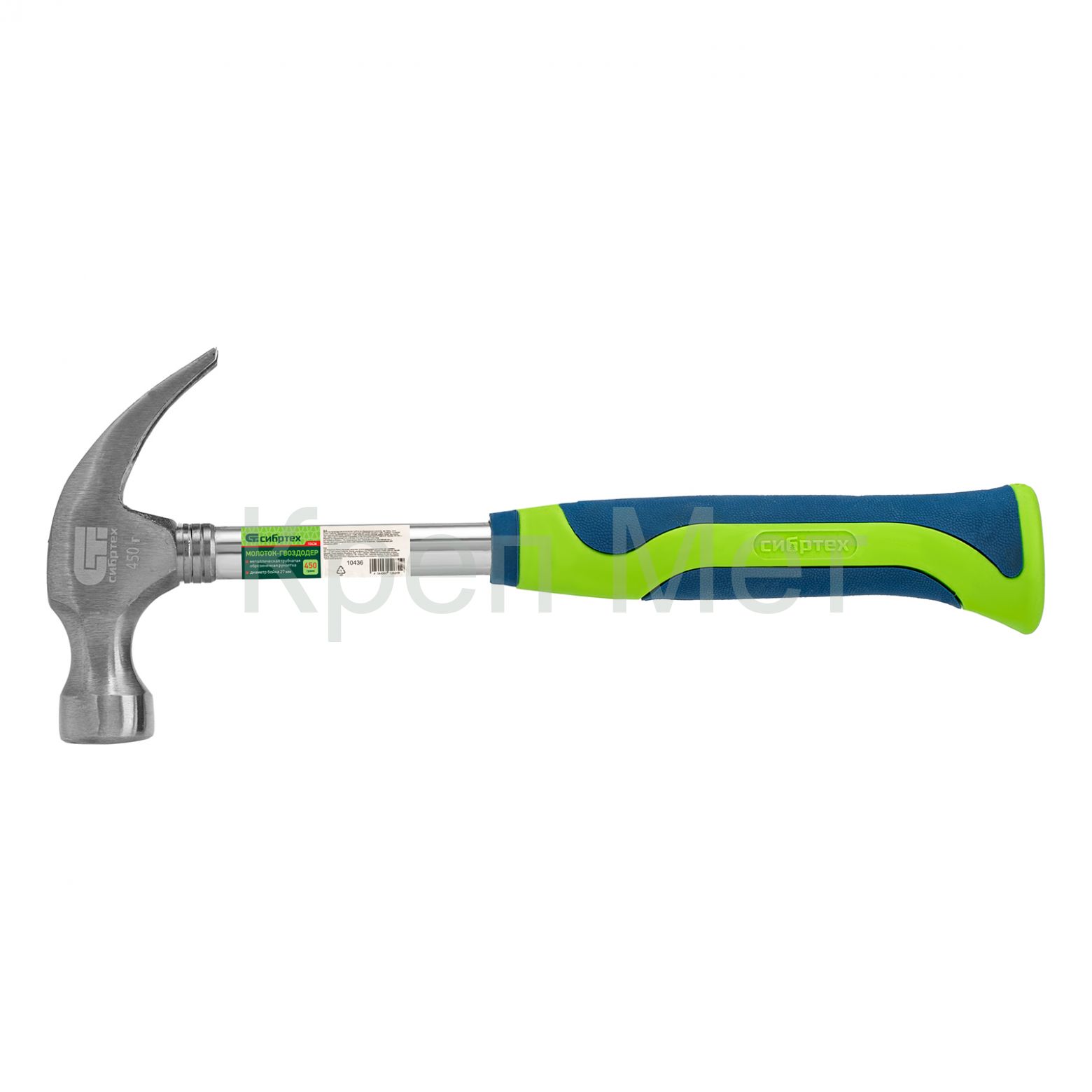 - Молоток-гвоздодер, металлическая трубчатая обрезиненная рукоятка, вес 450 г, боек 27 мм Сибртех