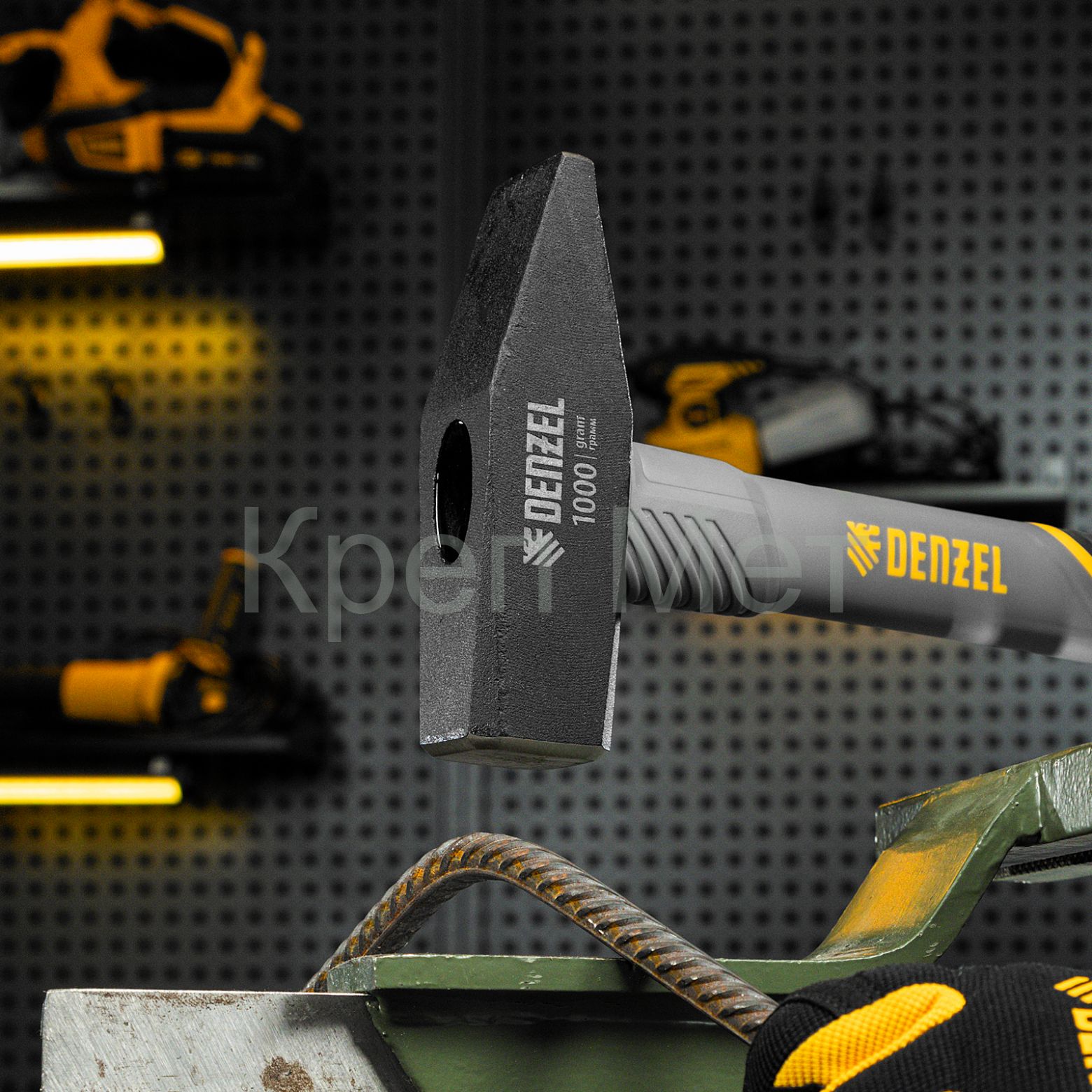 - Молоток слесарный, 1000 г, кованый, фибергласовая рукоятка c TPR покрытием Denzel
