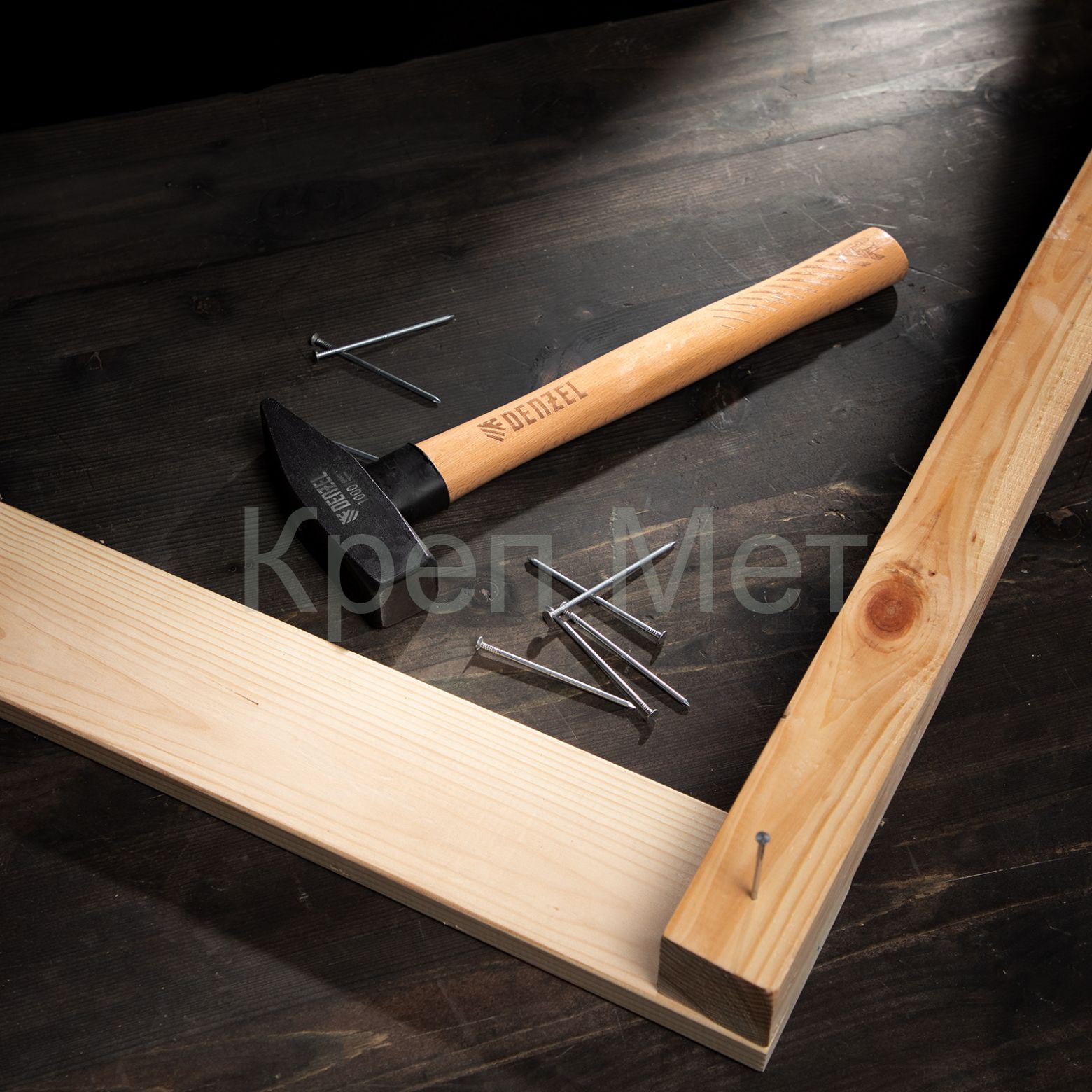 - Молоток слесарный, 1000 г, кованый квадратный боек, буковая рукоятка Denzel