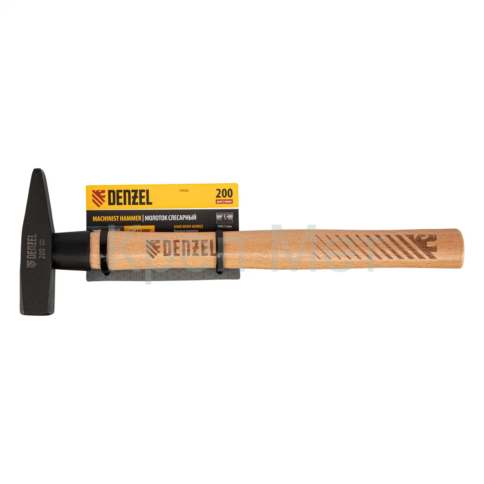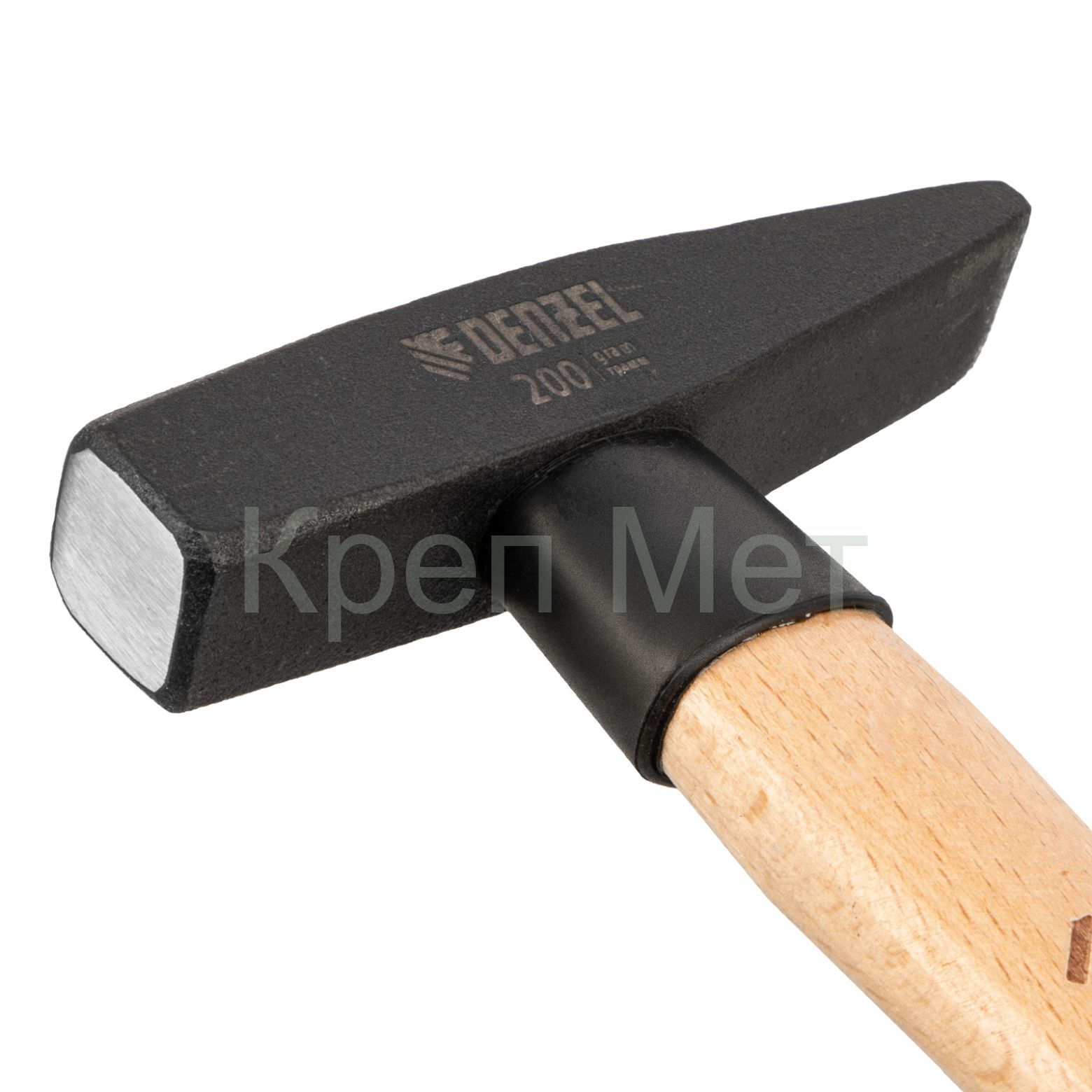 Молоток слесарный, 200 г, кованый квадратный боек, буковая рукоятка Denzel