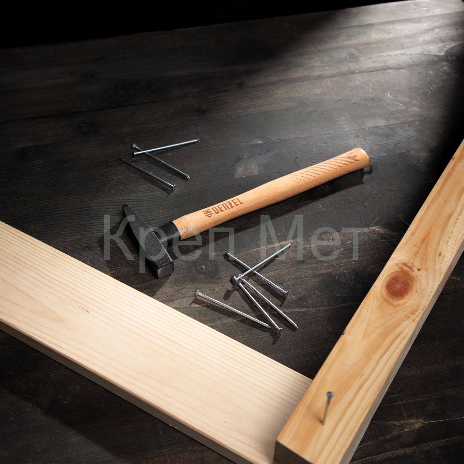 - Молоток слесарный, 200 г, кованый квадратный боек, буковая рукоятка Denzel