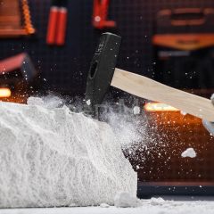 - Прочность — головка изготовлена из среднеуглеродистой стали 45 методом ковки и отфрезерована, рабочие части бойка закалены до твердости 40-45 HRC.