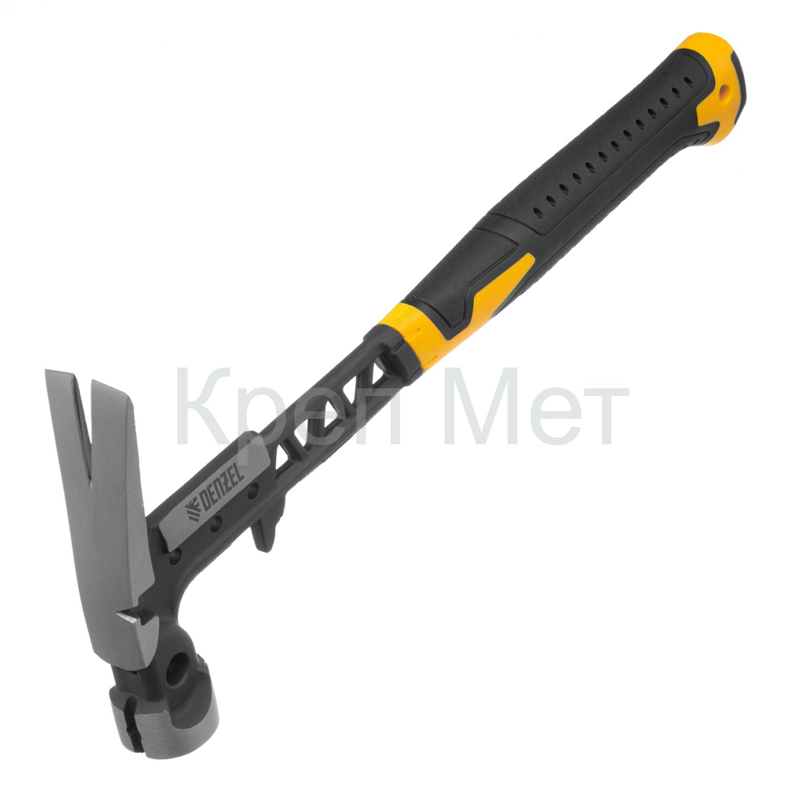 - Молоток строительный 450 г, цельнокованый,боек с магнитом, двухкомп. обрезин. рук-ка Denzel